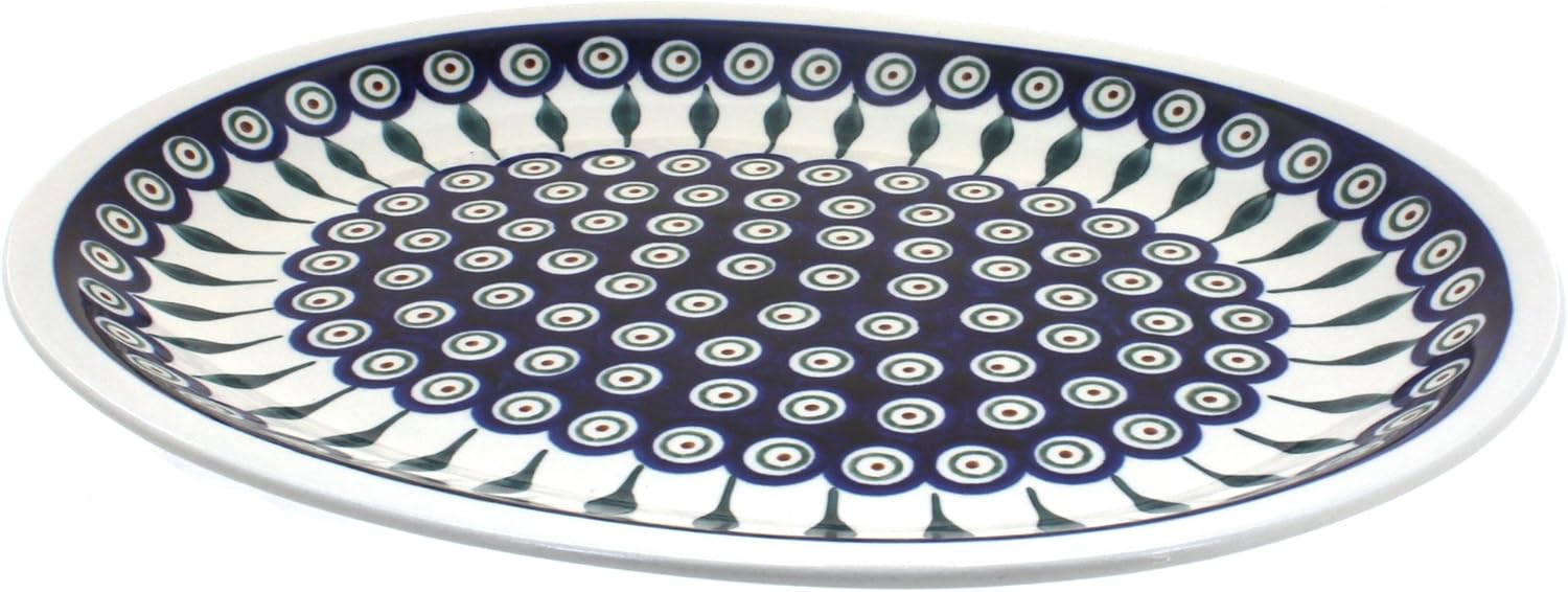 Blue Rose Polish Pottery Peacock Large Serving Platter