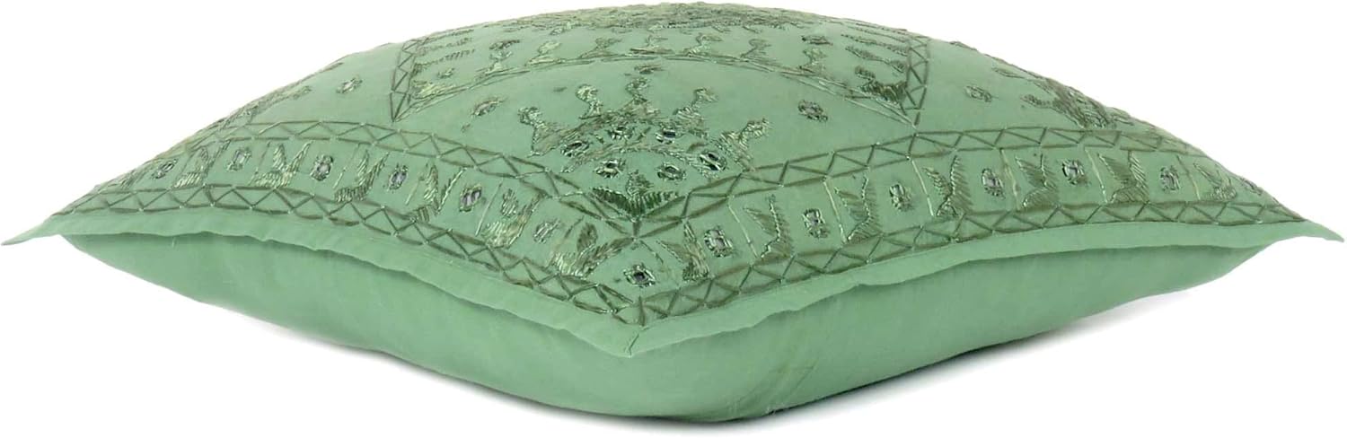 Eyes of India Embroidered Decorative Boho Throw Pillow Cover with Mirrors, Handmade Bohemian Accent Cushion Case for Sofa Couch Bedroom Living Room (Green, 24" x 24")