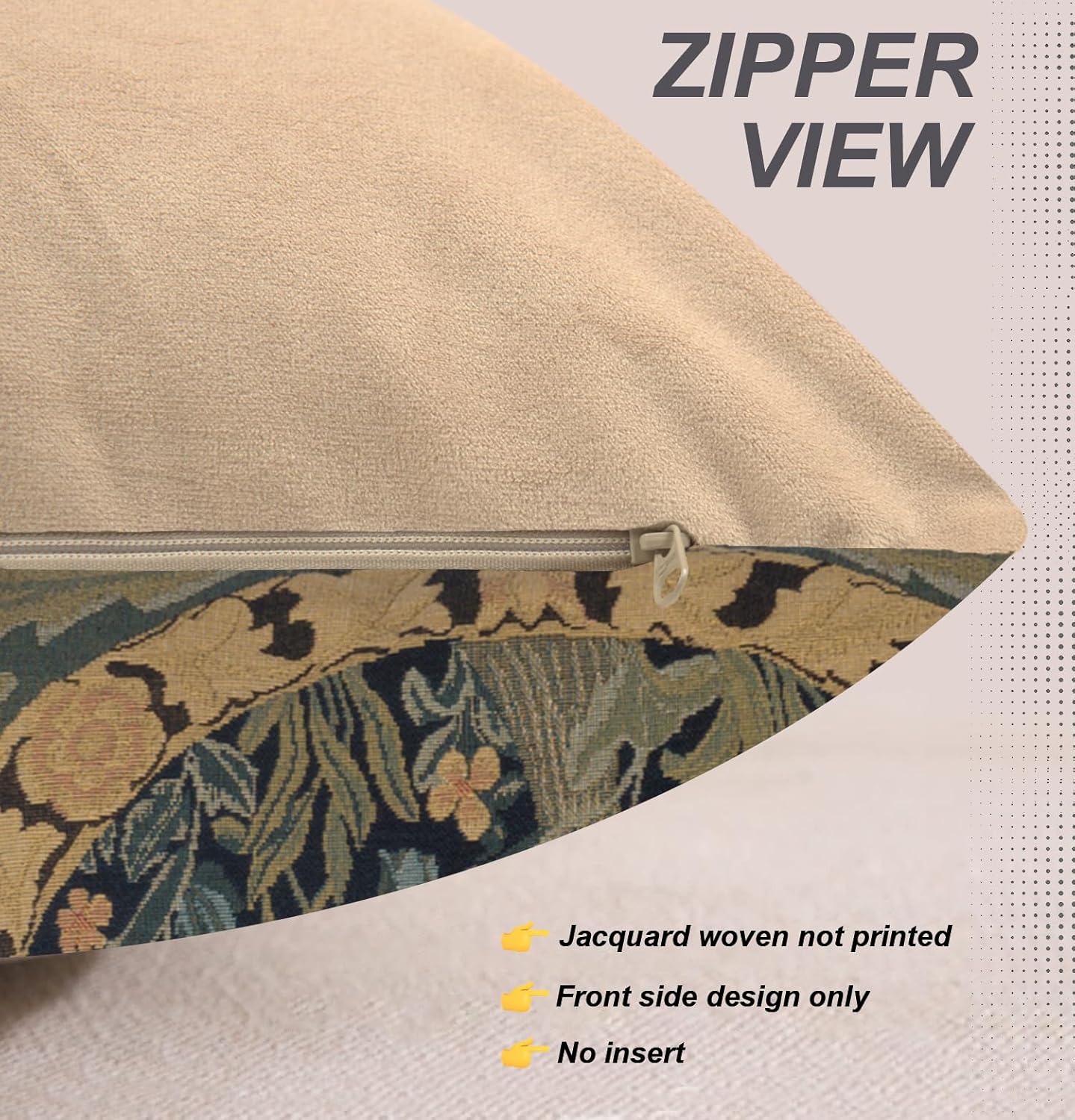- STYLISH DURABILITY: Experience the ultimate comfort and quality with our breathable, 14ā x 14ā pillow cover with a super-soft backside. Enjoy the convenience of a seamless hidden zipper for easy pillow Insertion/Removal, while the strong stitching ensures durability. Unlike printed cushions, our throw cushion covers are woven with premium threads, ensuring colorfastness and making them a standout choice. They never go out of style. Pillow inserts NOT included.