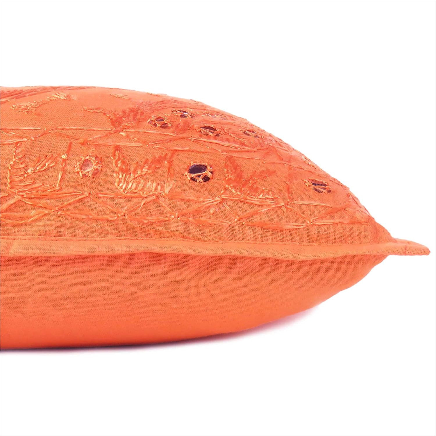 Eyes of India Embroidered Decorative Boho Throw Pillow Cover with Mirrors, Handmade Bohemian Accent Cushion Case for Sofa Couch Bedroom Living Room (Orange, 24" x 24")
