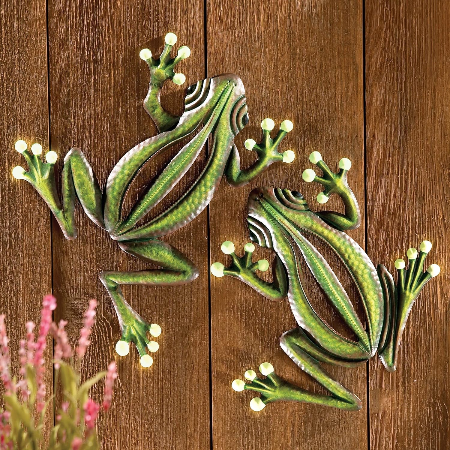 Collections Etc Glow in The Dark Hanging Frogs Wall Fence Tree Decor - Set of 2, Green