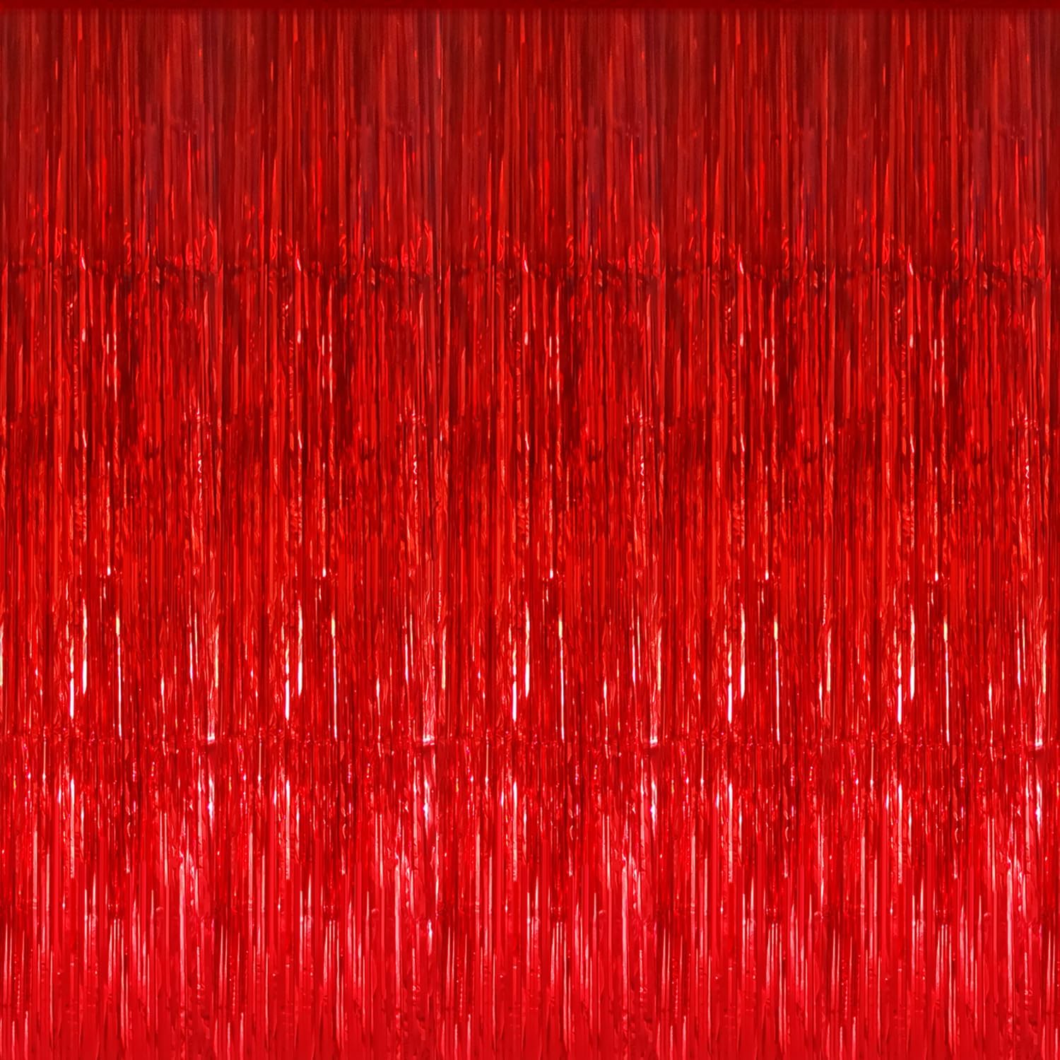 - Package Includes:1 pack red foil fringe curtain,3.2 ft x 8.2 ft each,suitable for hanging on a door or coverage a wall fully
