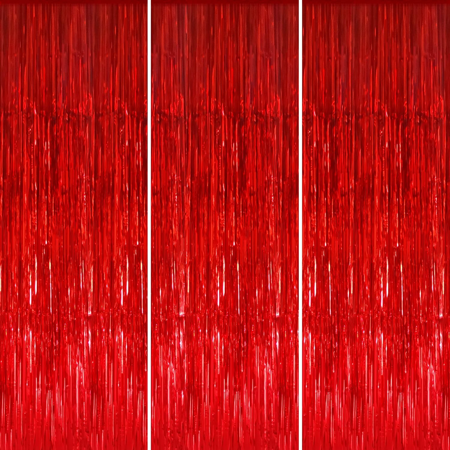- Package Includes:3 pack red foil fringe curtains,3.2 ft x9.8 ft each,suitable for hanging on a door or coverage a wall fully