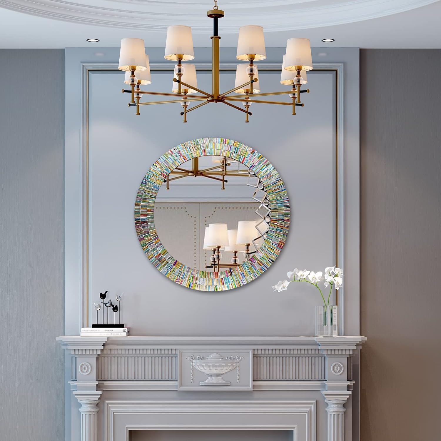 - 24" Round Decorative Wall Mosaic Mirror with Rainbow Colored Mosaic Glass Tile Frame