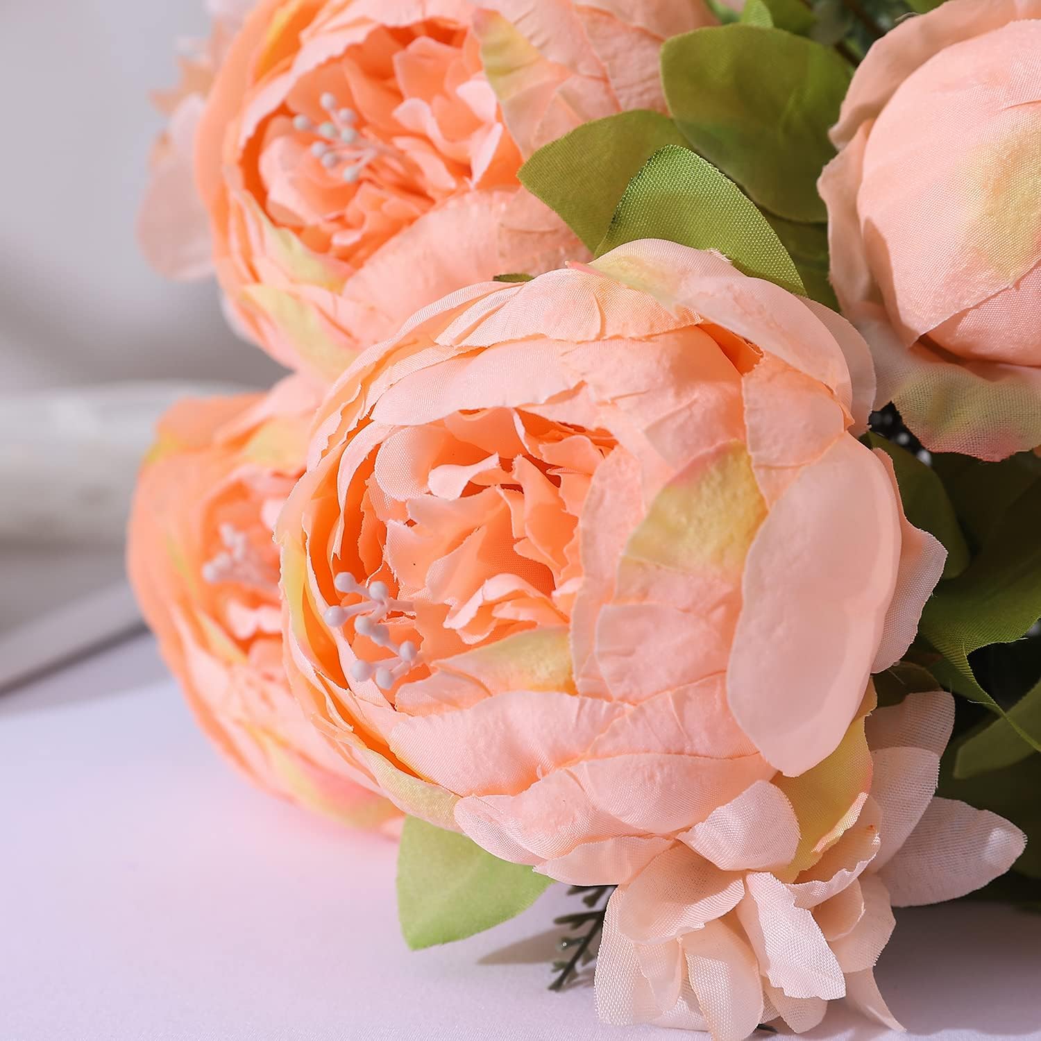 Duovlo Springs Flowers Artificial Silk Peony Bouquets Wedding Home Decoration,Pack of 1 (Spring Orange-Pink)
