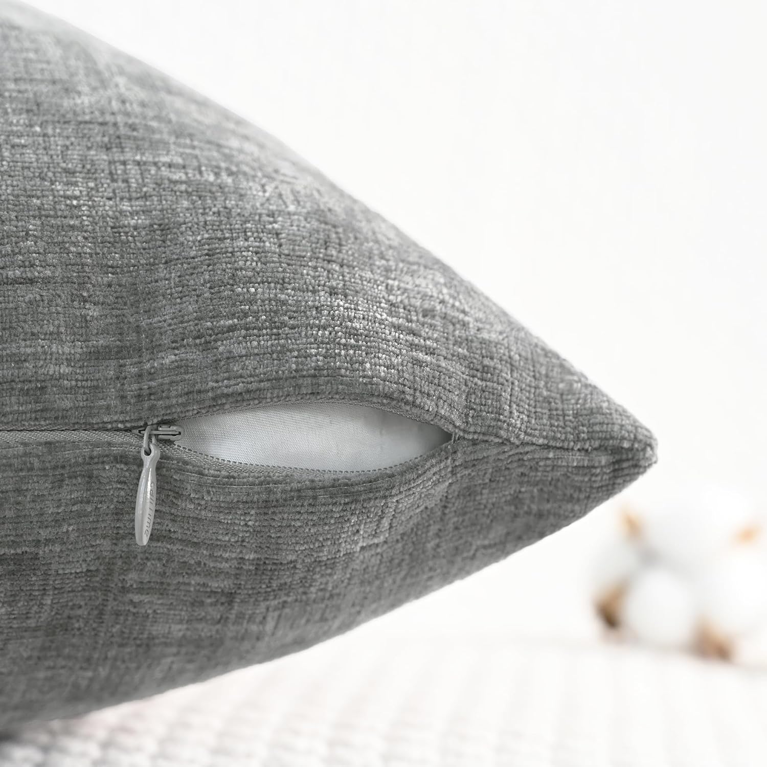 CaliTime Throw Pillow Covers Decorative 18 X 18 Inches Pack of 2 Cozy Chenille Cushion Cases for Couch Sofa Bed Living Room Home Medium Grey