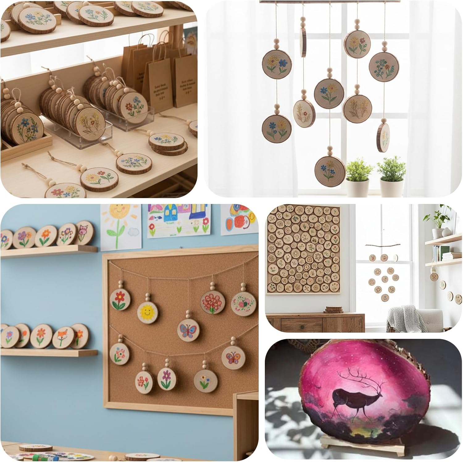 - Easy to use: Each wood slice is pre-drilled with a hole, making it easy to hang. The surface is smooth and easy to write and paint on, making it very suitable for making handicrafts