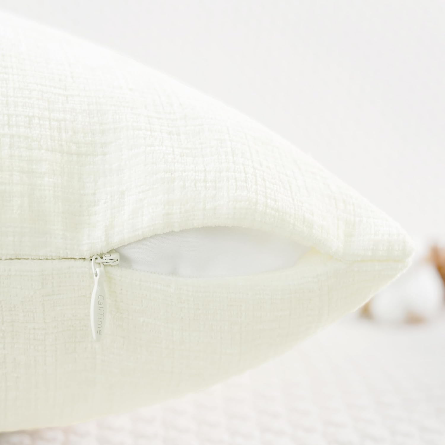 CaliTime Throw Pillow Covers Decorative 20 X 20 Inches Pack of 2 Cozy Chenille Cushion Cases for Couch Sofa Bed Living Room Home Cream