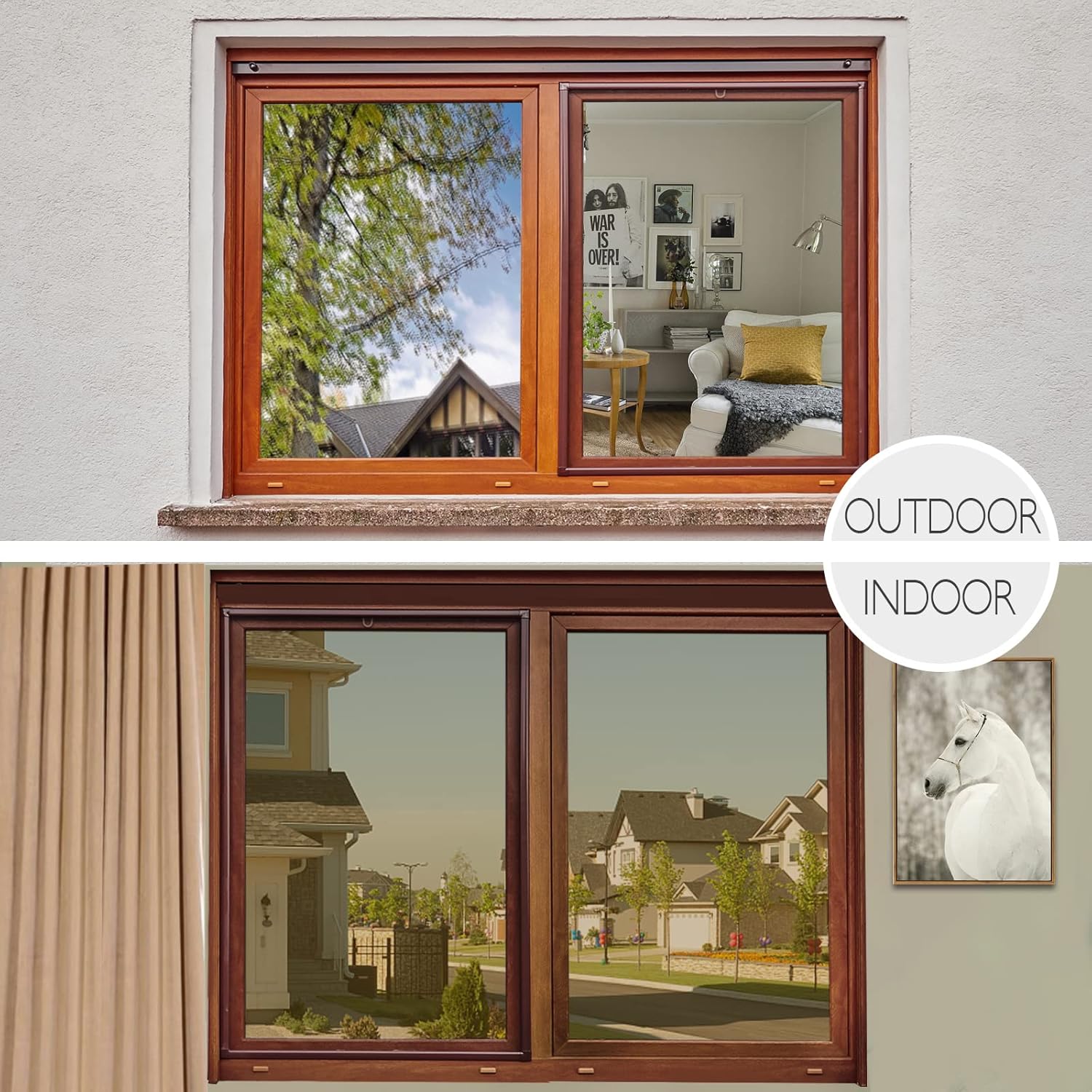 - SUPERIOR DAYTIME PRIVACY PROTECTION â Applying our window privacy film see out not in lets you see out and does not let prying eyes see in during daytime while letting natural lights in, and from the outside, the glass shows a mirror like reflective surface. NOTICE: When the inside light is stronger than the outside light at night, the window film privacy one way CANNOT provide privacy, and the mirror reflective effect will disappear. Do remember to draw the curtains during the night.raw the curtains during the night