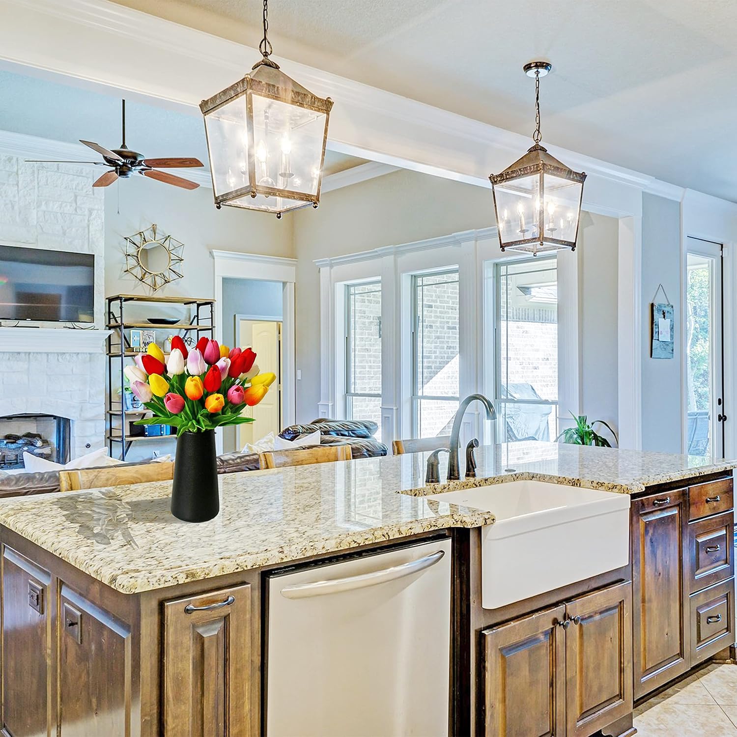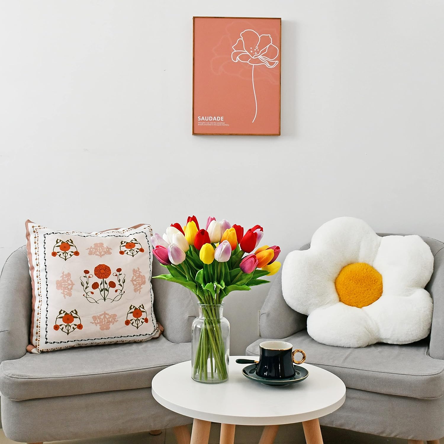 Mandy's Artificial Tulips 28 Stems Multicolor PU Faux Flowers for Wedding Home Decor 13.5 Inch