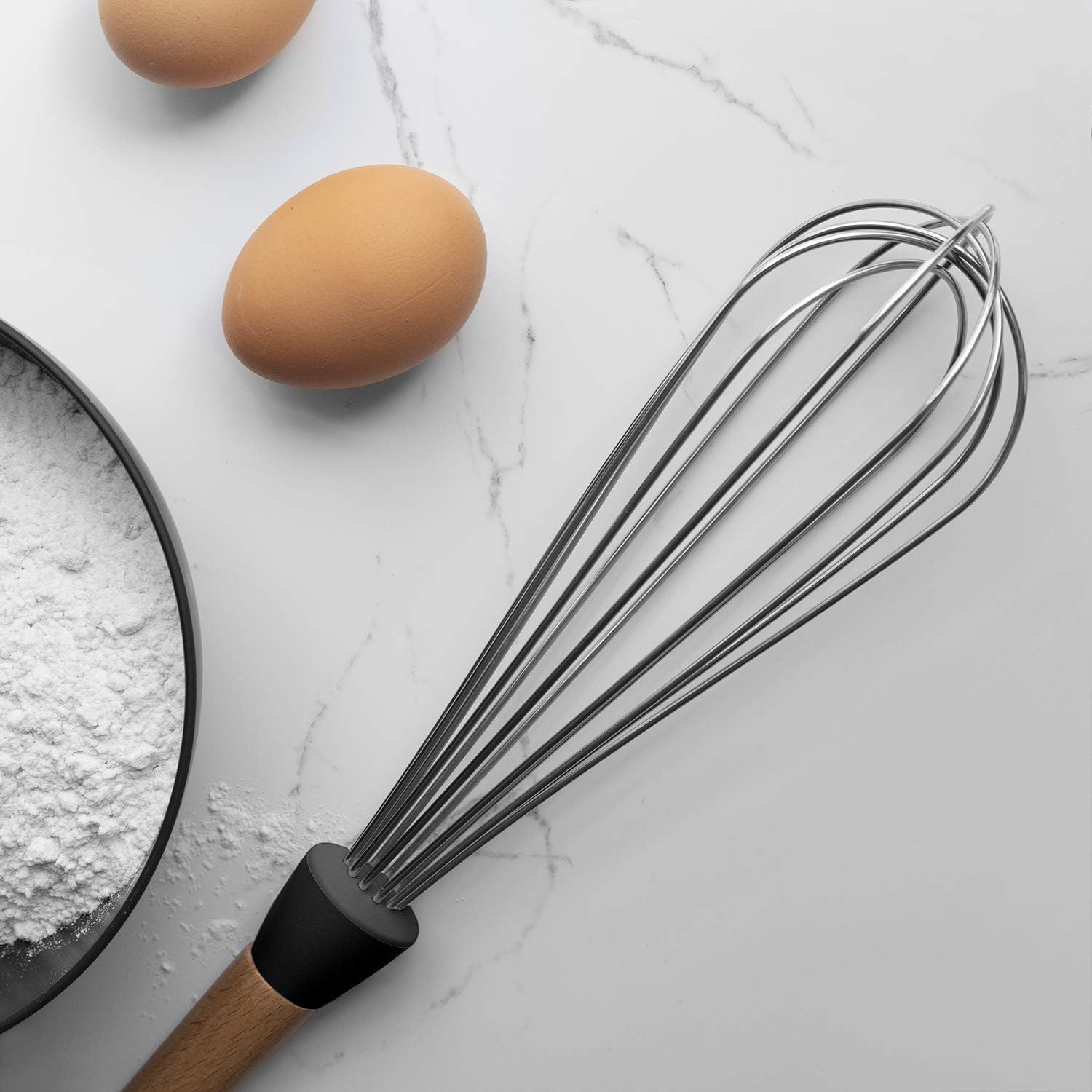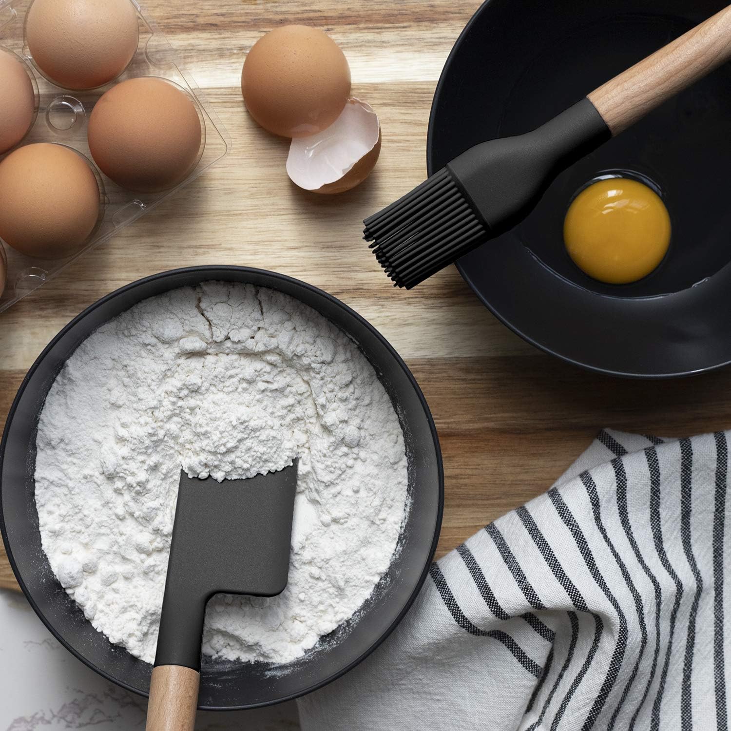 - Equip your Kitchen with all the essential baking tools and cook, bake, and serve with fun and fashion at the same time, this colorful and stylish set features black silicone utensils with easy to grip wood handles. Hand wash recommended. BPA free; heat resistant up to 450° F. Hand wash only.