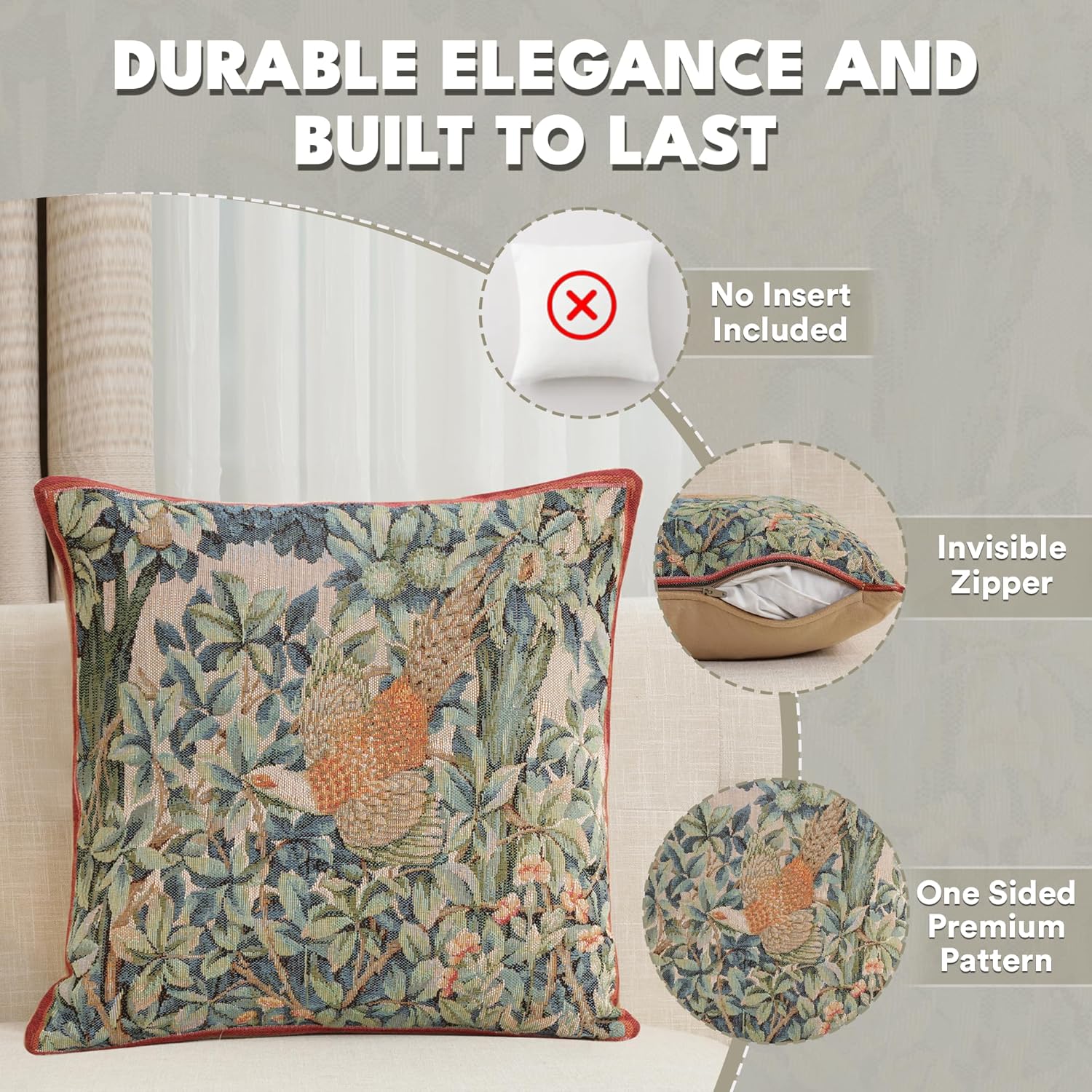 - Timeless Durability: Elevate your decor with our skin-friendly William Morris pillow covers 14āX14ā, where quality and style come together. A sturdy hidden zipper ensures easy pillow insertion/removal, while the overlock stitches prevent seam ripping. Unlike thin printed cushion covers prone to tearing, our decorative pillows for couch with a super-soft backside are crafted with thick premium threads for long-lasting quality. THE PACKAGE INCLUDES A SINGLE TAPESTRY PILLOW COVER WITHOUT AN INSERT