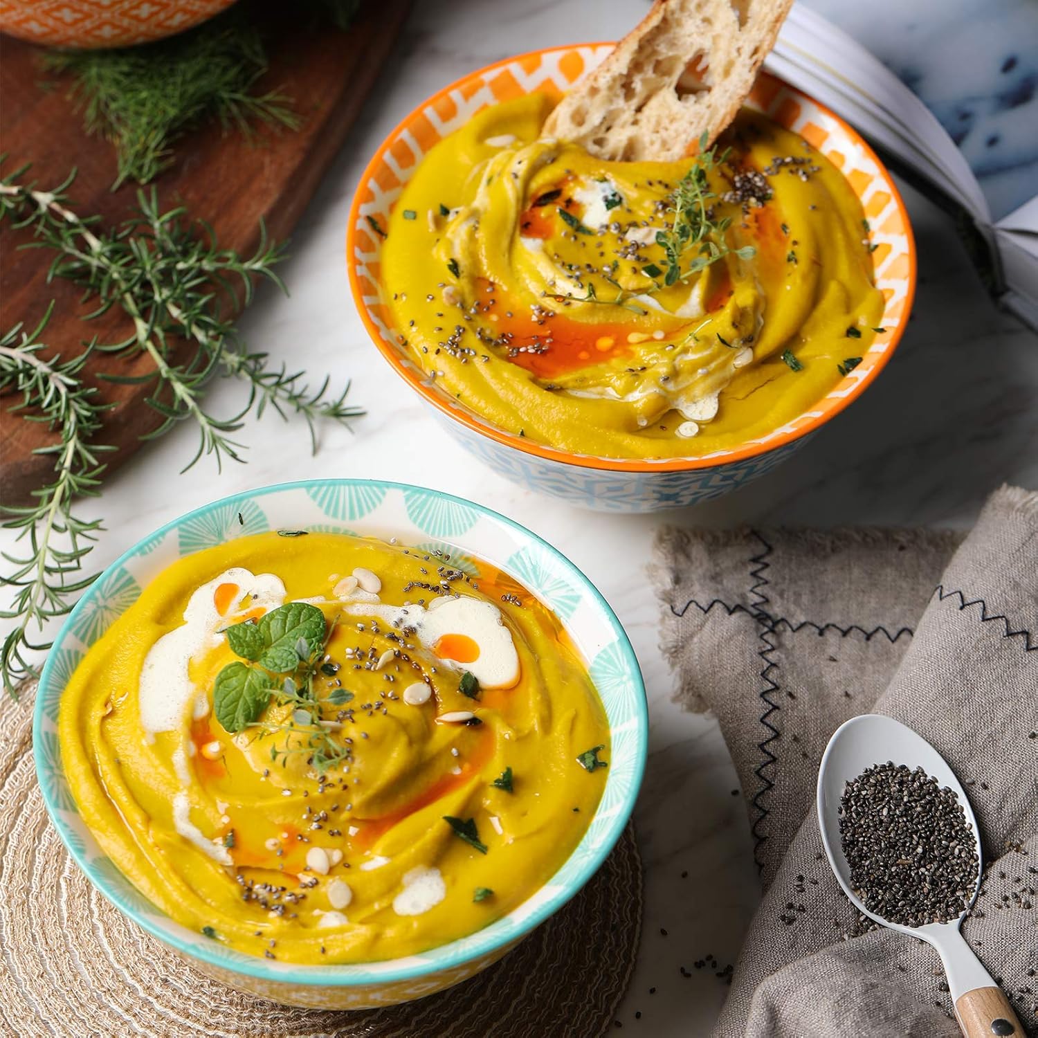 Selamica Porcelain 20oz Cereal Bowl Set - Set of 6, 6 inch Soup Bowls, Ceramic bowls for Cereal, Soup, Salad and Pasta, Colorful bowls