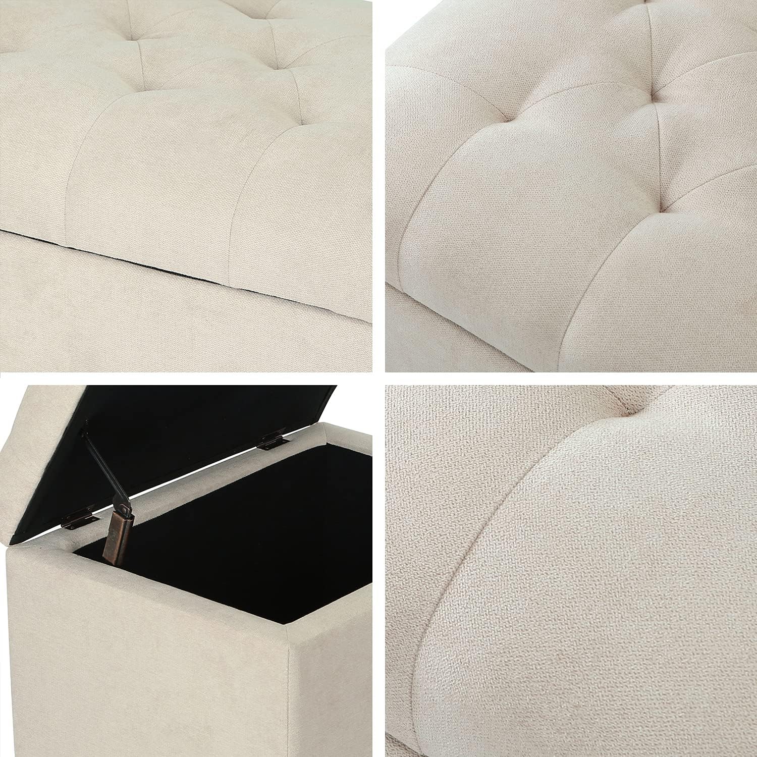 Joveco Storage Ottoman, 24" Fabric Rectangle Tufted Bench Foot Rest Stool for Living Room Bedroom, Beige