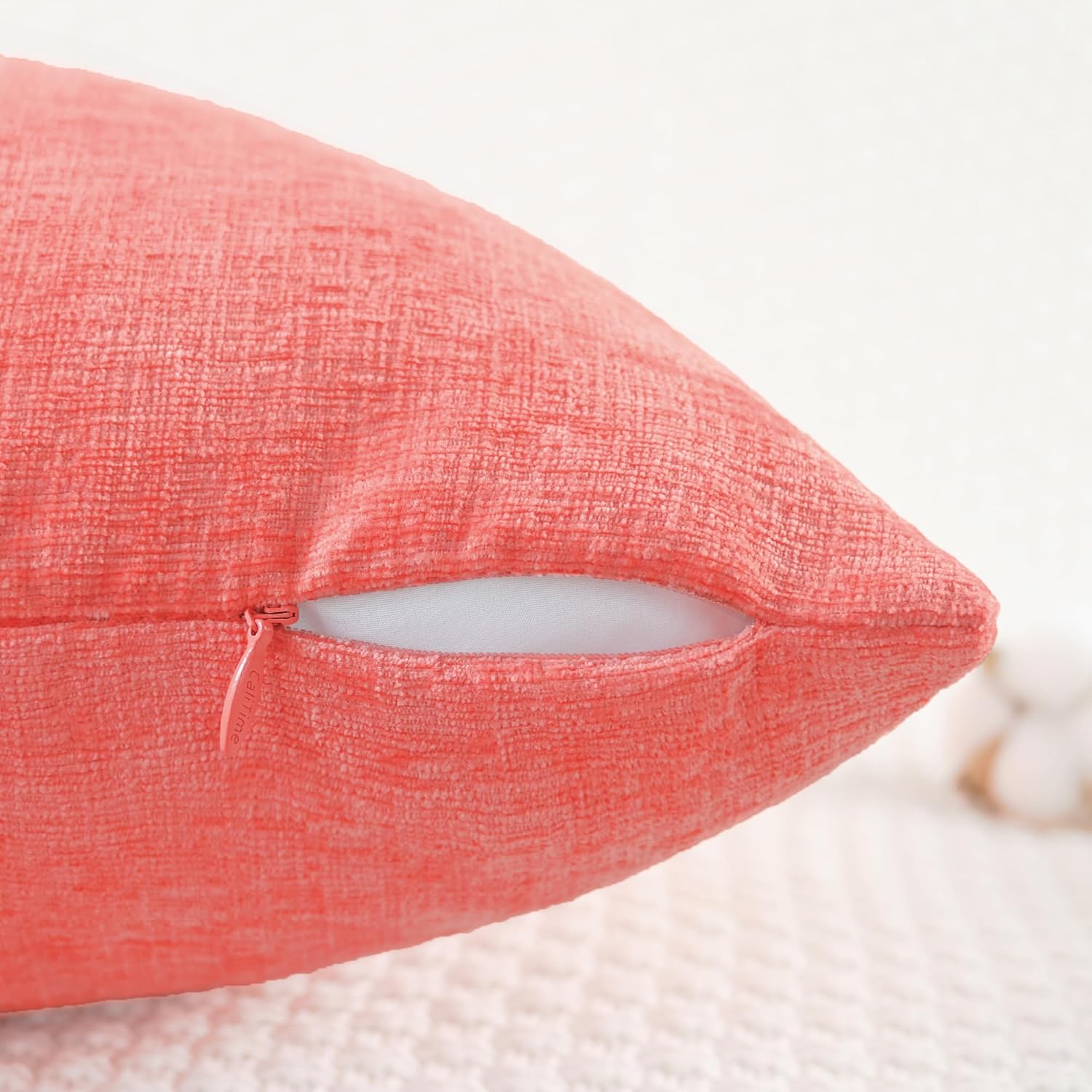 CaliTime Throw Pillow Covers Decorative 12 X 20 Inches Pack of 2 Cozy Chenille Cushion Cases for Couch Sofa Bed Living Room Home Living Coral