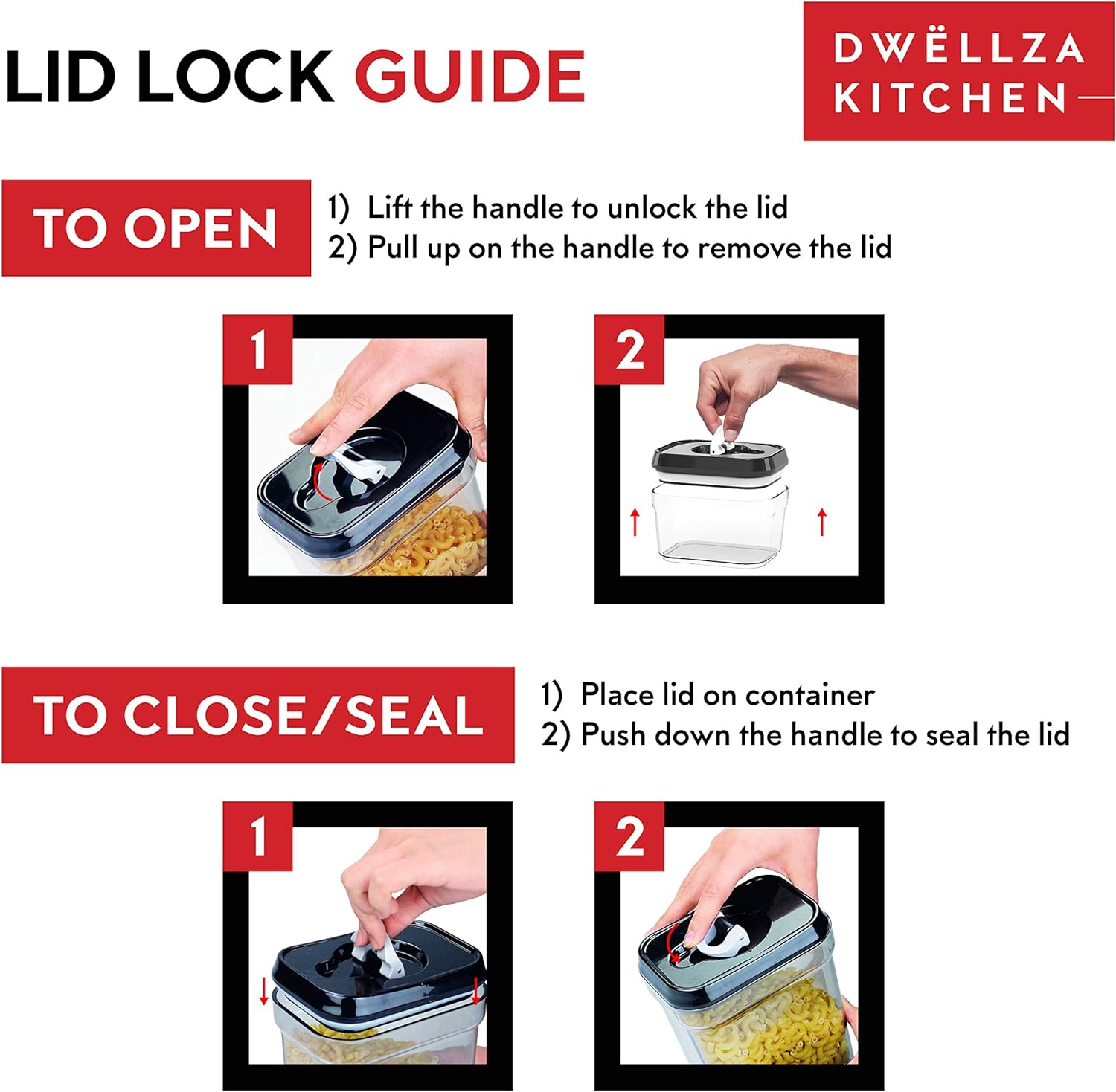 - Enjoy Your Meal With Fresh Food: Keep your foods fresh with our very easy to use airtight lid-lock mechanism. No dealing with flimsy pumps. Our food storage containers create an airtight seal by simply pushing down the ring on the lid. Lift the ring and push up whenever you want to open the containers.