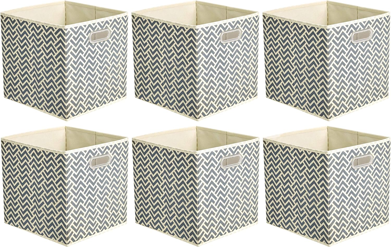 Amazon Basics Collapsible Cube Storage Organizer Bins, 6-Pack, 10.5 x 10.5 x 11 inches, Chevron Grey