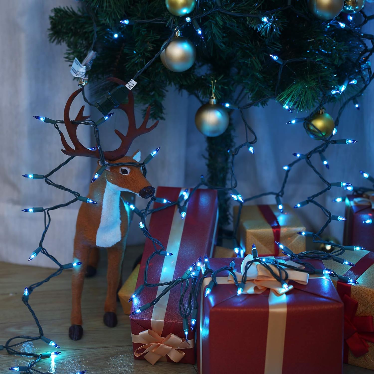 - Indoor & Outdoor Lighting Decor: UL Certificated, green wire combine with blue lights perfect for Christmas trees, wreaths, wrapping trees, patios, pergolas, bushes, hedges, fences, pillars, weddings, holidays, prom, dance functions, restaurants, bars or wherever decoration lighting is wanted! Note: Please kindly protect these string lights from immersing in the water!