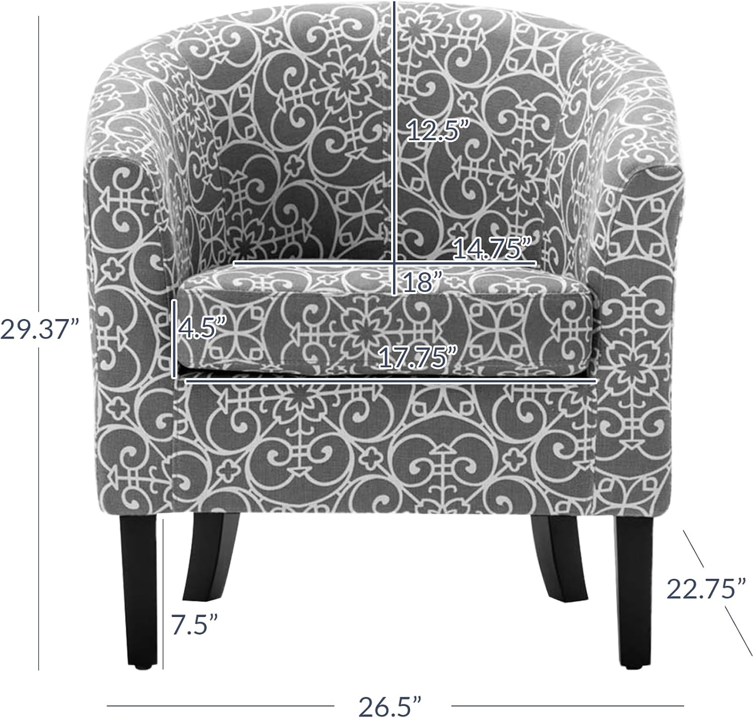 - Product Dimensions : 22.75"D x 26.5"W x 29.37"H