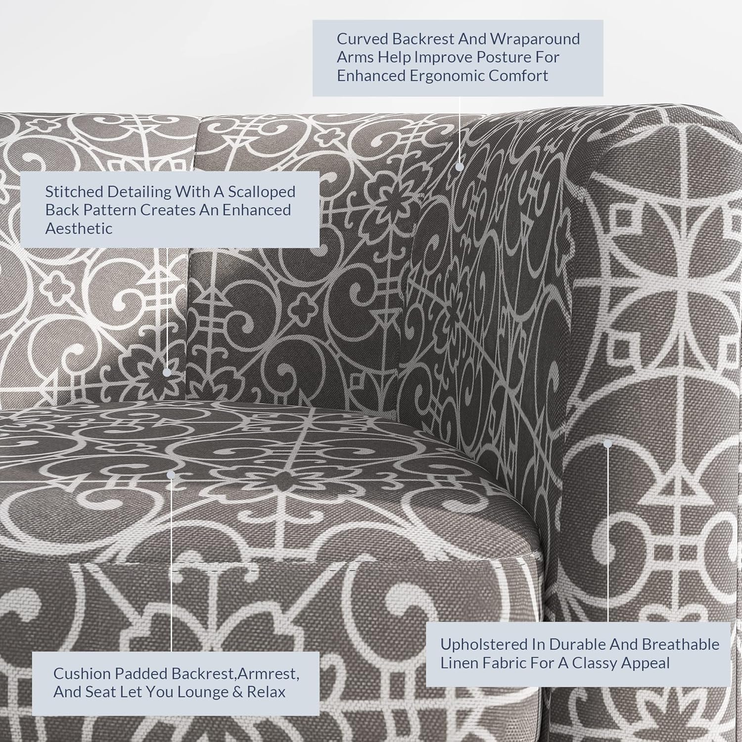 - [ERGONOMIC DESIGN] Our corner chair is designed with a curved backrest and wraparound arms, ensuring ergonomic seating with elevated comfort. Covered in breathable and durable linen, gives this accent chair an upscale look and feel.