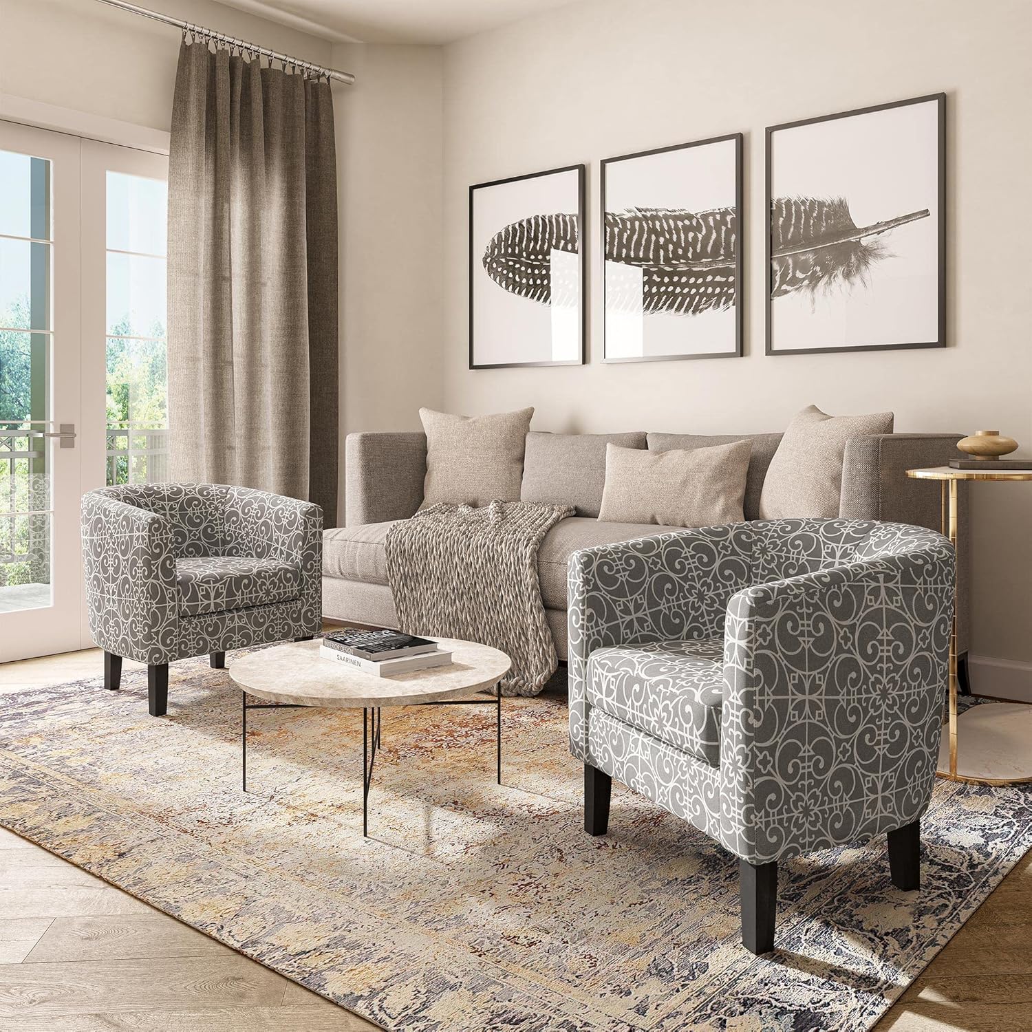 - [STYLISH DESIGN] Defined by a deep barrel design, this bucket chair adds an understated modern accent to your decor. A stylish addition to your living room, bedroom, guest room, or in hotels and cafes.
