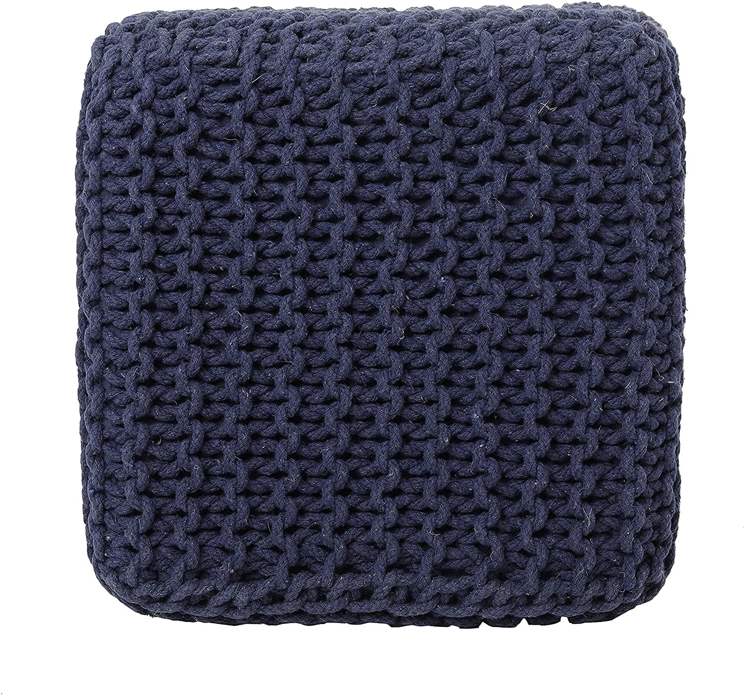 REDEARTH Square Hand Knitted Pouf - Foot Stool Ottoman Coffee Table - Cotton Cord Boho Pouffe - Poof Accent Footrest for Living Room - Bedroom - Library (16" x 16" x 16") - Navy Blue