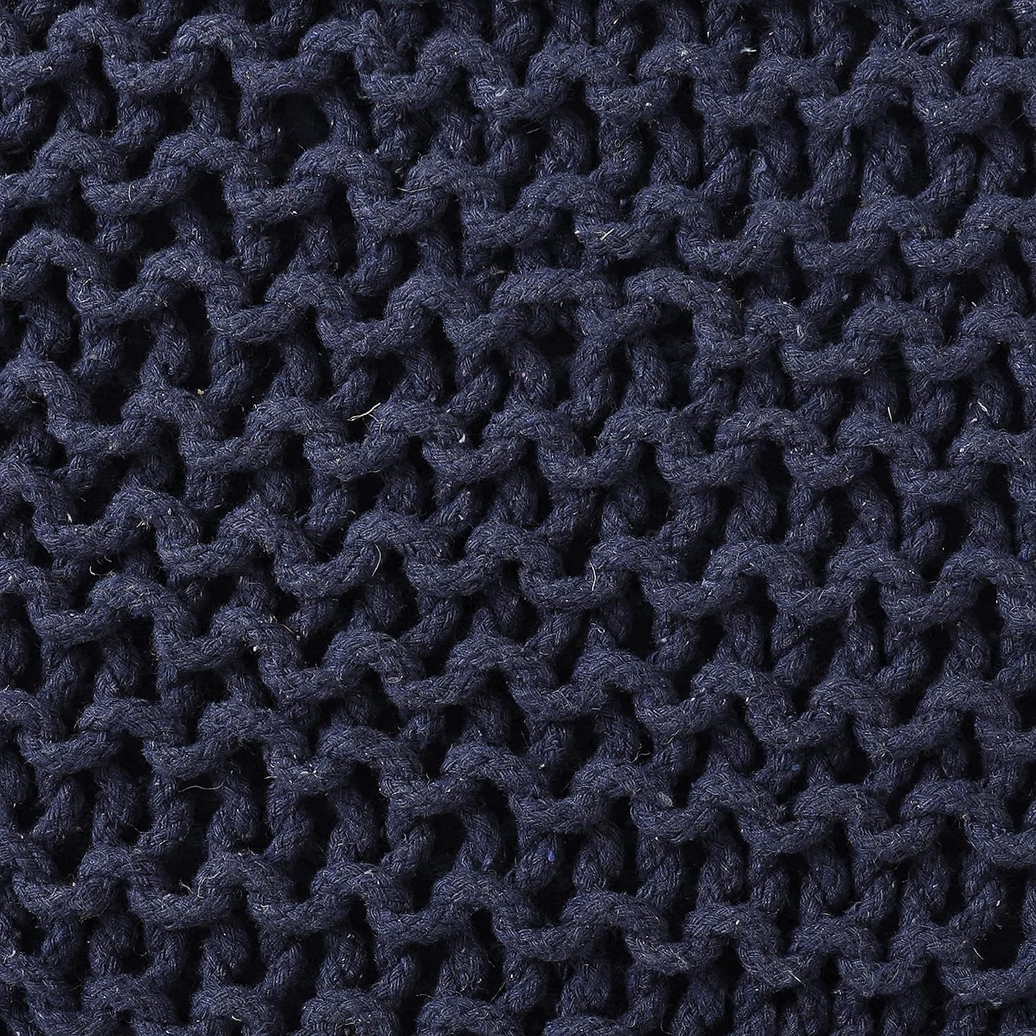- HANDMADE FROM THE FINEST MATERIALS: The outer material on this eye-catching pouf ottoman is made from 100% cotton chord knitted in a unique pattern and filled with thermocol block inserts. Each floor pouf measures 16x16x16 inches and is handmade by our talented in-house artisans. This floor pouf is perfect when you need to rest your leg