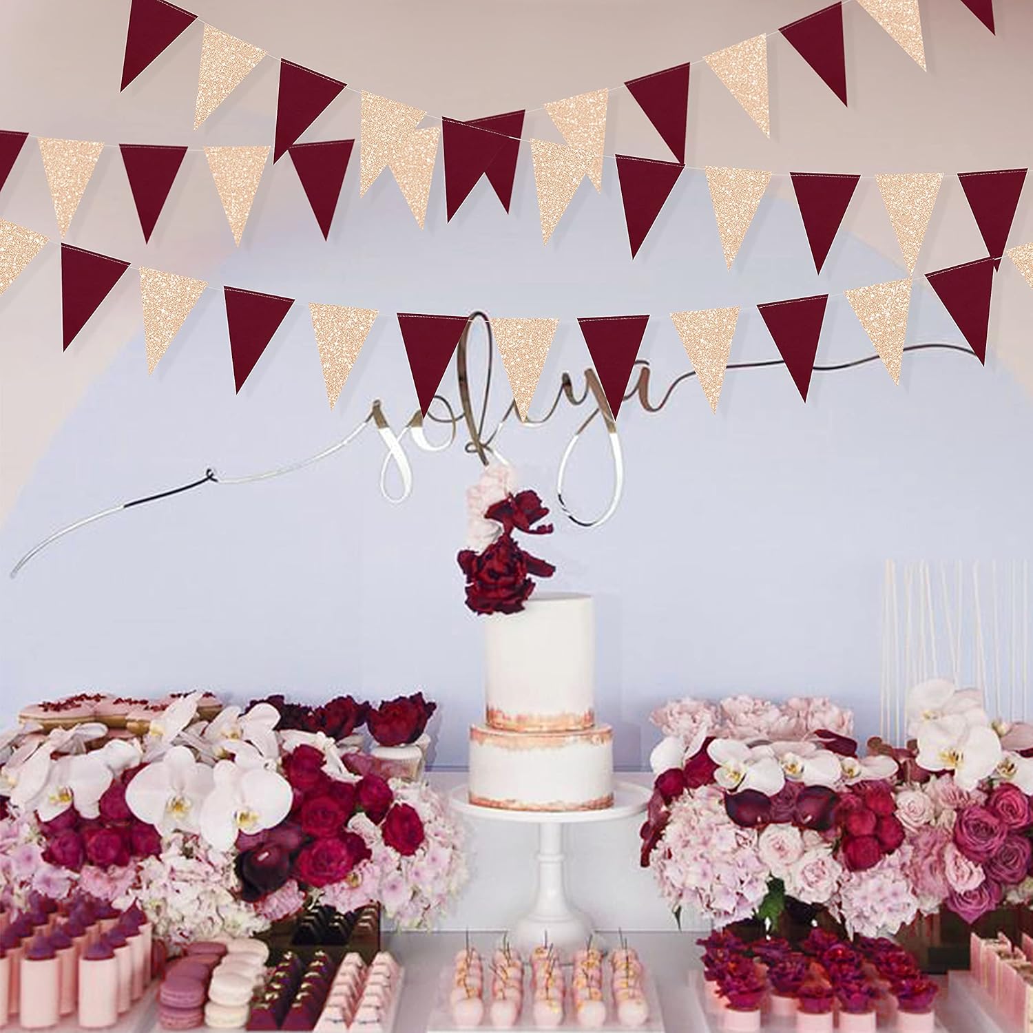 Burgundy Party Decorations Maroon Champagne Gold Triangle Banner Flag Bunting Pennant for Birthday Engagement Wedding Bridal Shower Baby Shower Anniversary Bachelorette Hen Party Decorations Supplies
