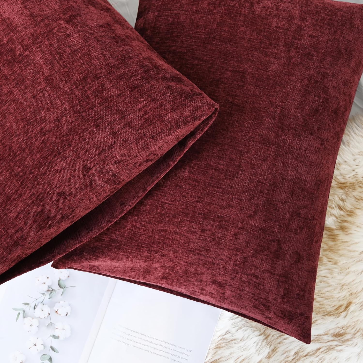 CaliTime Throw Pillow Covers Decorative 20 X 26 Inches Pack of 2 Cozy Chenille Standard Pillow Shams Cases for Couch Sofa Bed Living Room Home Burgundy
