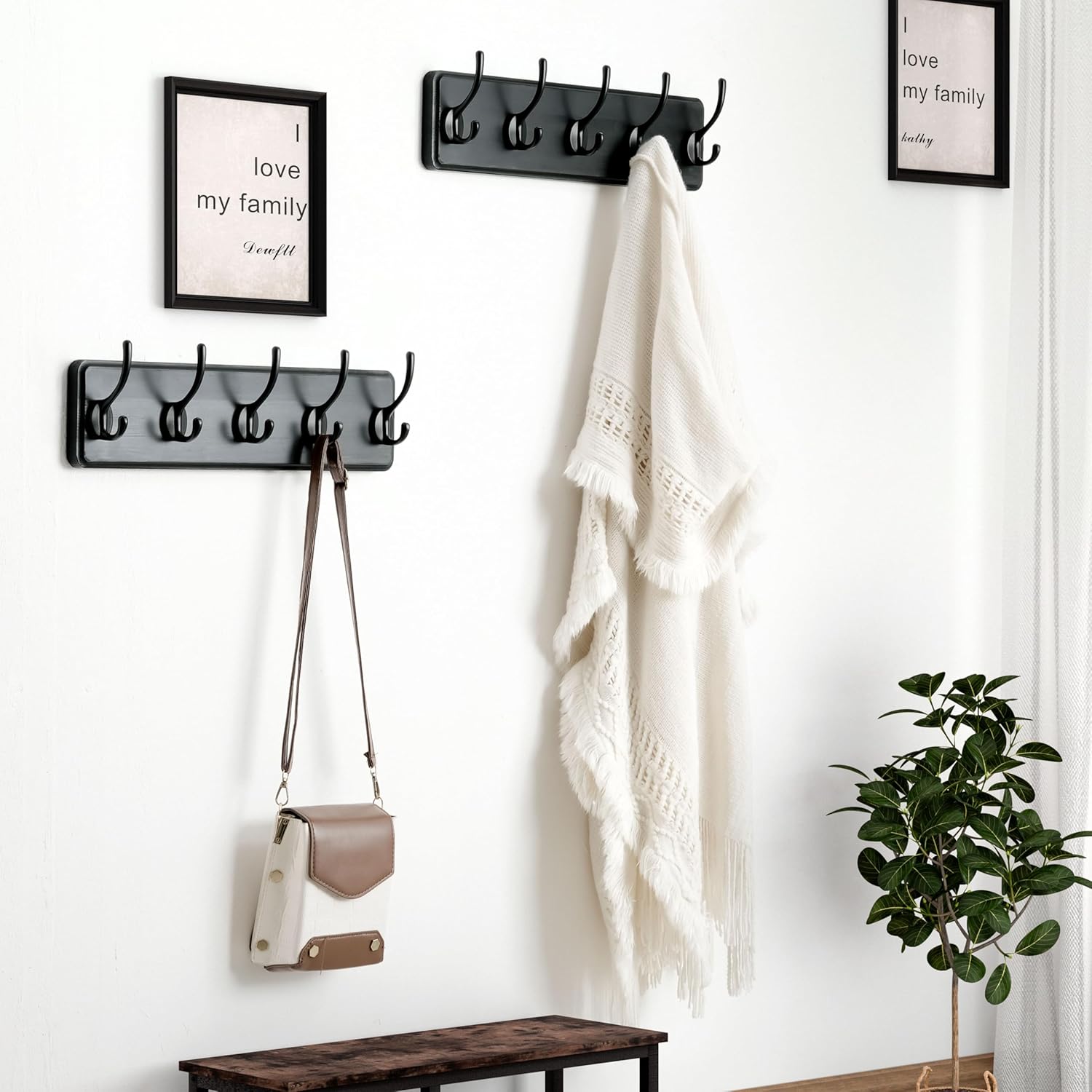 - Ultra-practical wall coat hanger with 5 dual hooks for perfect hanging coats, clothes, towels, jackets, hats, bags, etc. in entryways, bathrooms, mudrooms, and closets.