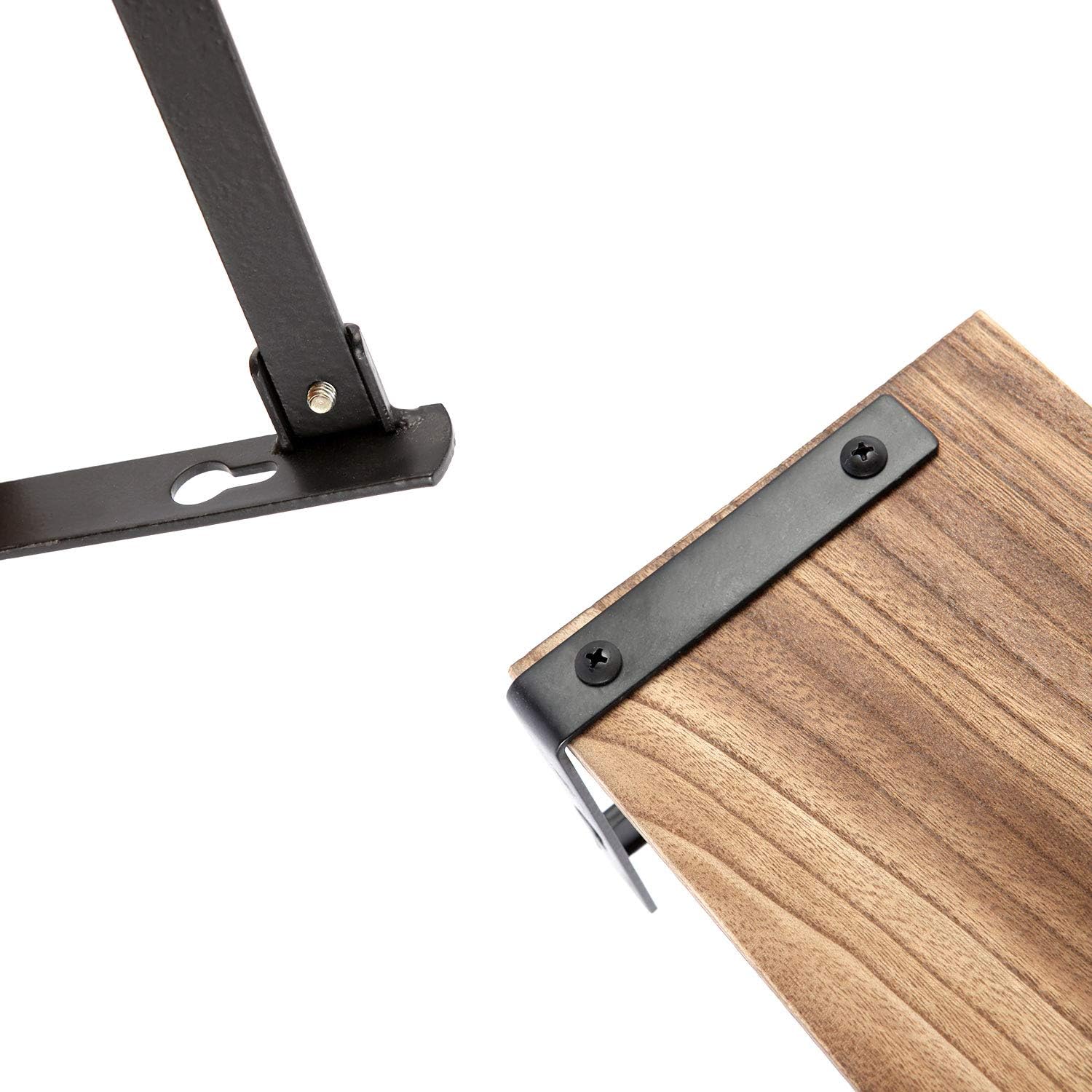 - ăTHICEN BRACKETă:All the metal part of this black floating shelves is made from superior quality steel,the ironwork is anti-friction, order this wood floating shelves set for yourself or as a thoughtful housewarming gift idea for a special friend, and youâll receive 3 rustic wall mounted shelves, sized 17â x 5.6â, 14.5â x 5.6â and 11â x 5.6â to suit all your needs!metal brackets,