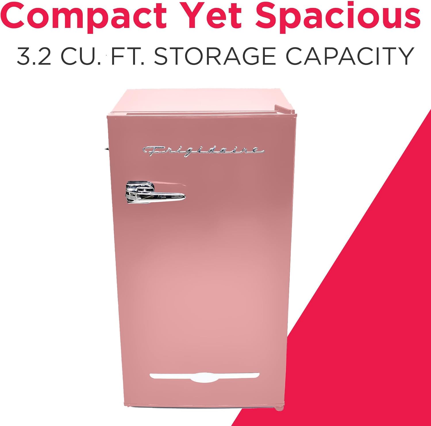 Frigidaire EFR376 Retro Bar Fridge Refrigerator with Side Bottle Opener, 3.2 cu. Ft, Pink/Coral