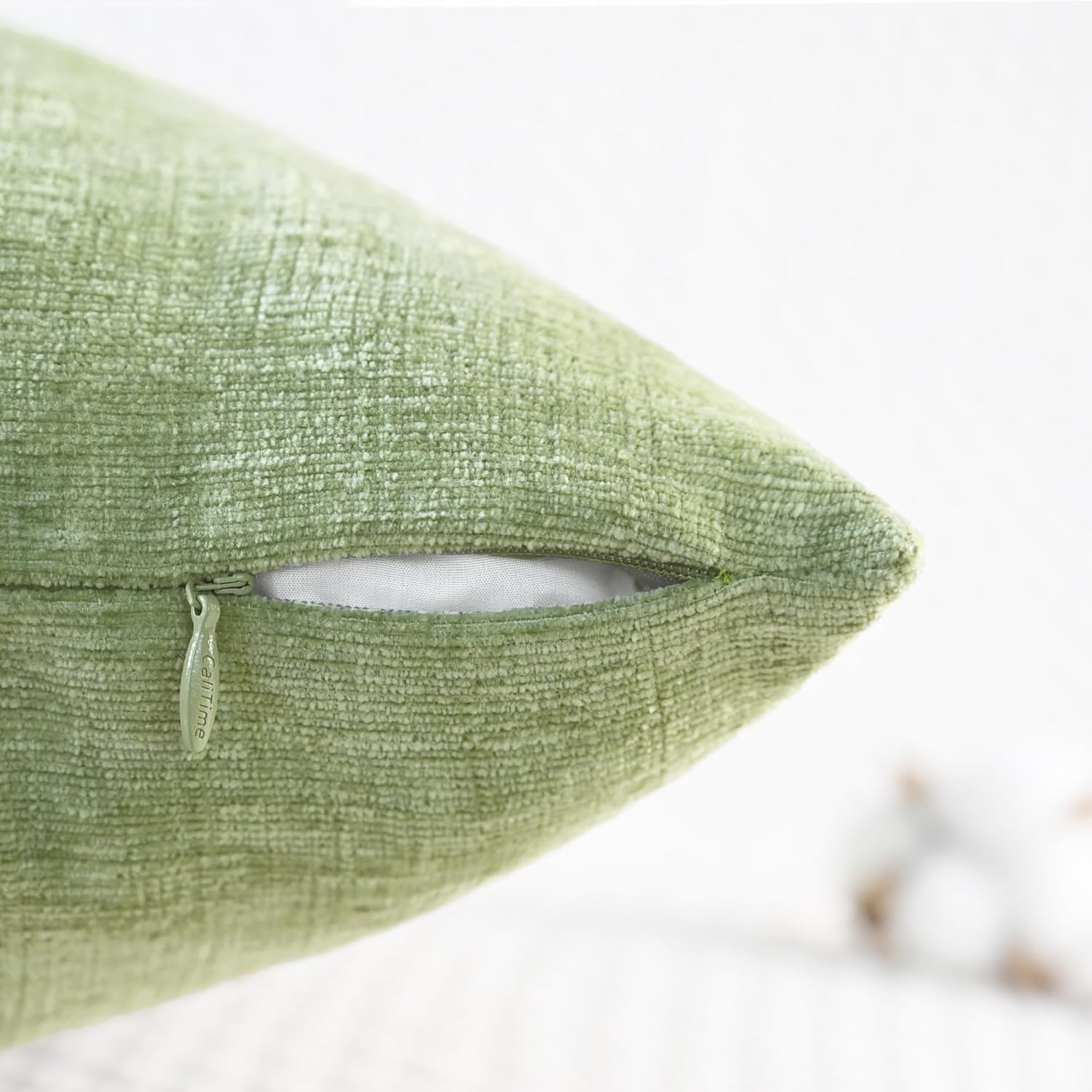 CaliTime Throw Pillow Covers Decorative 18 X 18 Inches Pack of 2 Cozy Chenille Cushion Cases for Couch Sofa Bed Living Room Home Sage Green