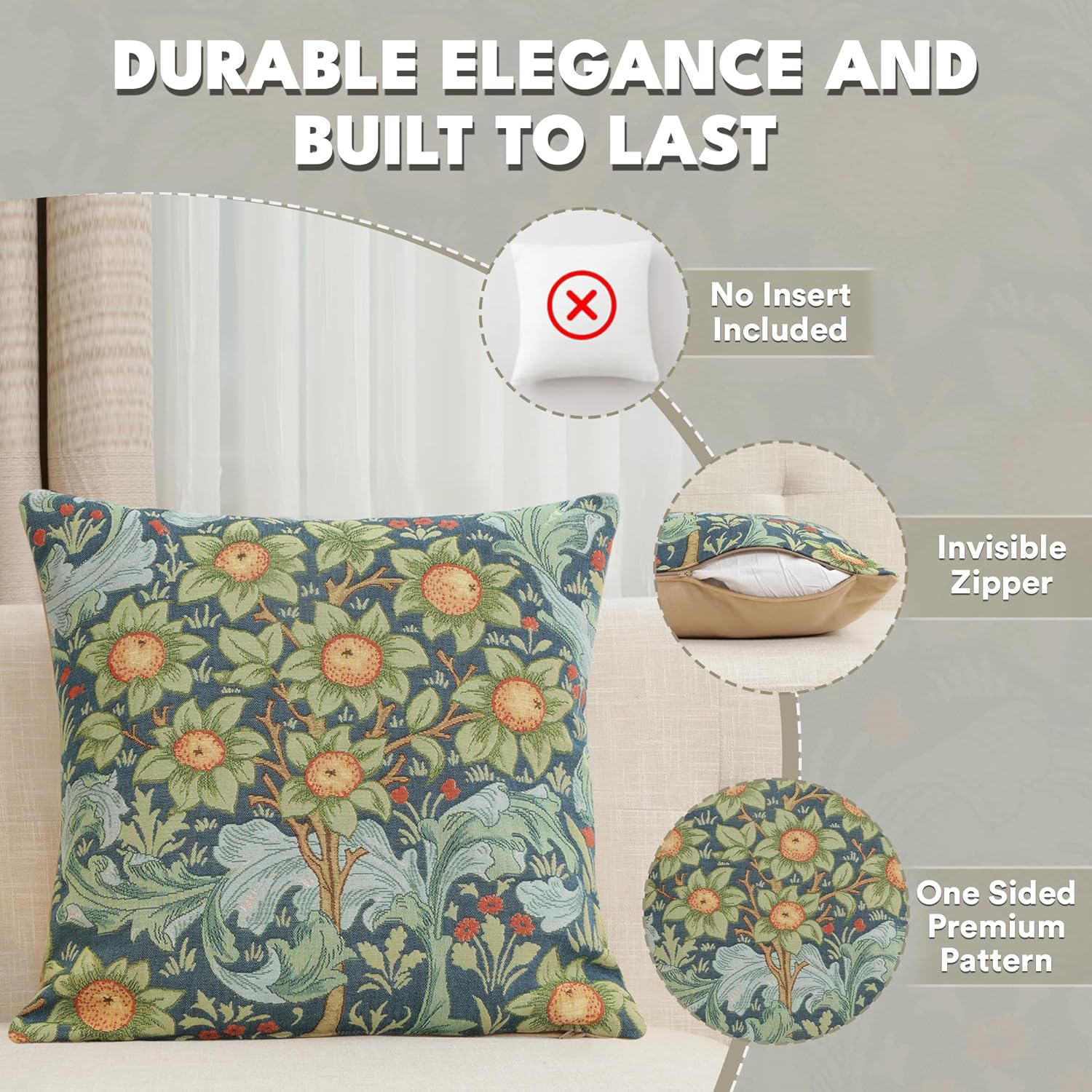 - Timeless Durability: Elevate your decor with our skin-friendly William Morris pillow covers 19āX19ā, where quality and style come together. A sturdy hidden zipper ensures easy pillow insertion/removal, while the overlock stitches prevent seam ripping. Unlike thin printed cushion covers prone to tearing, our decorative pillows for couch with a super-soft backside are crafted with thick premium threads for long-lasting quality. THE PACKAGE INCLUDES A SINGLE TAPESTRY PILLOW COVER WITHOUT AN INSERT