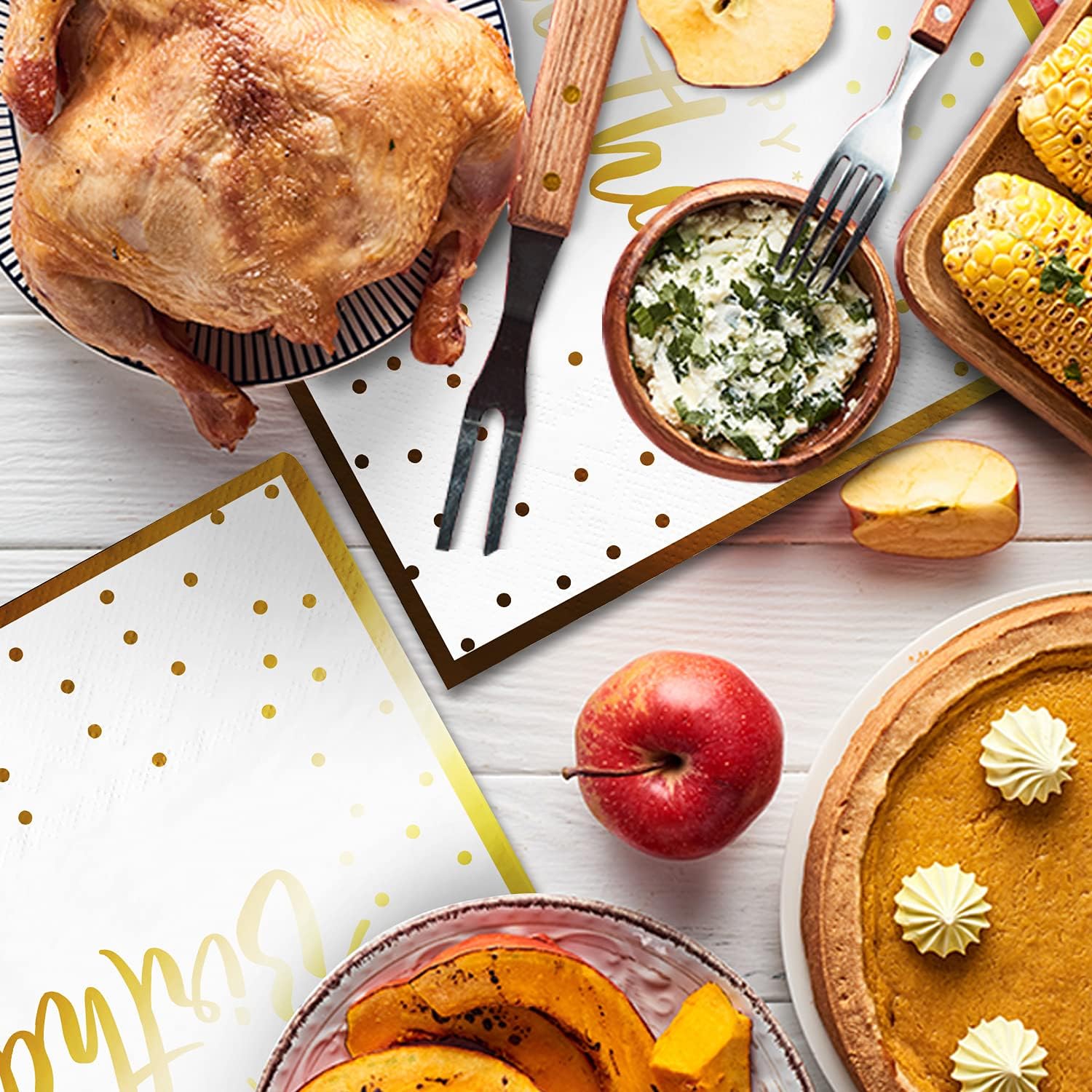 Gatherfun Birthday Party Supplies Napkins Disposable Paper Napkins with Gold Stamping for Adults and Kids Birthday Party(6.5X6.5 in, 3-Ply, 50-Pack)