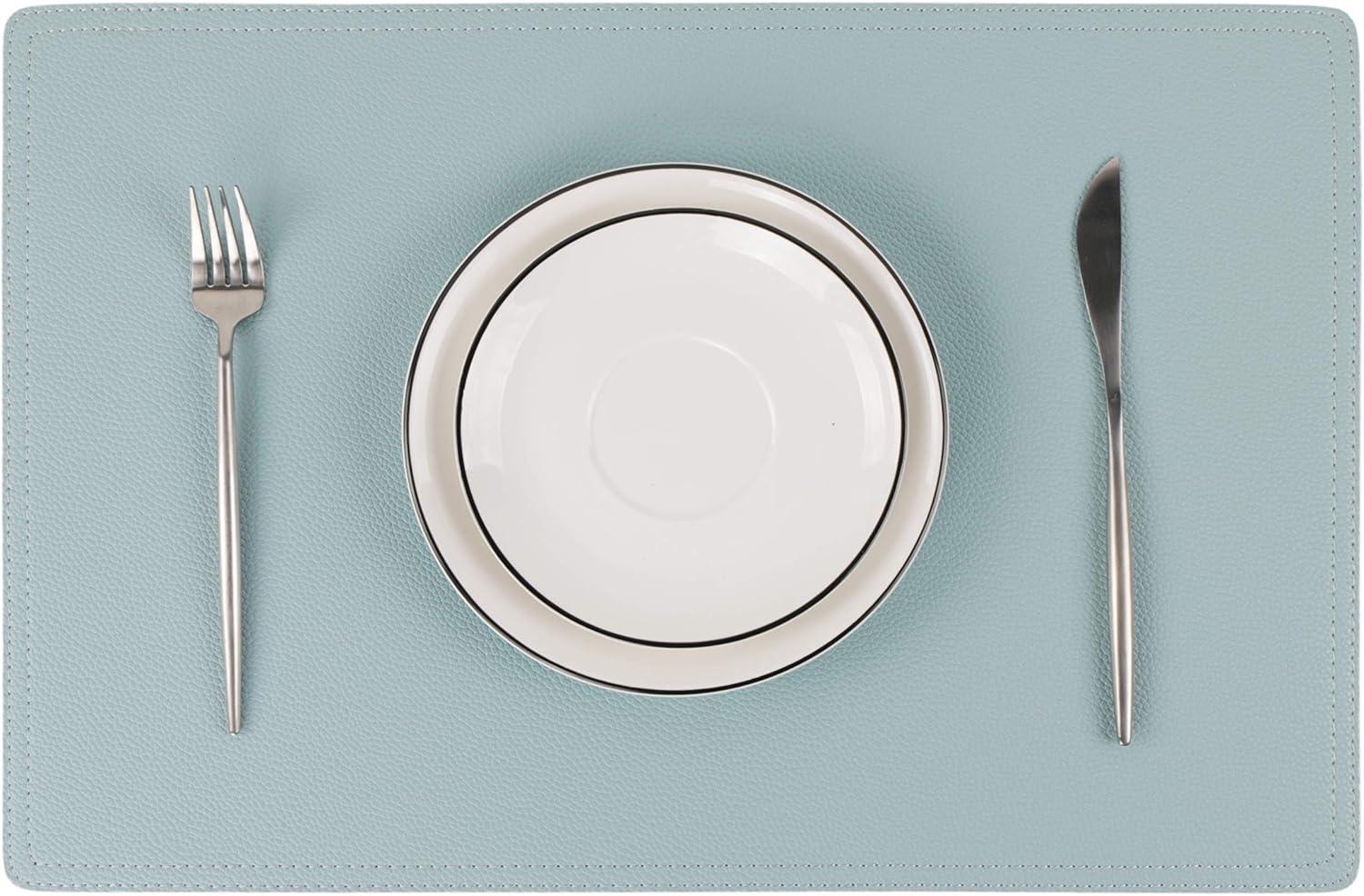 Faux Leather Placemats, PU Table Mats, Set of 4, Waterproof, Stain Resistant, Heat Resistant, Non-Slip Easy to Clean for Kitchen Dining Table,Conference Table C Teal Blue