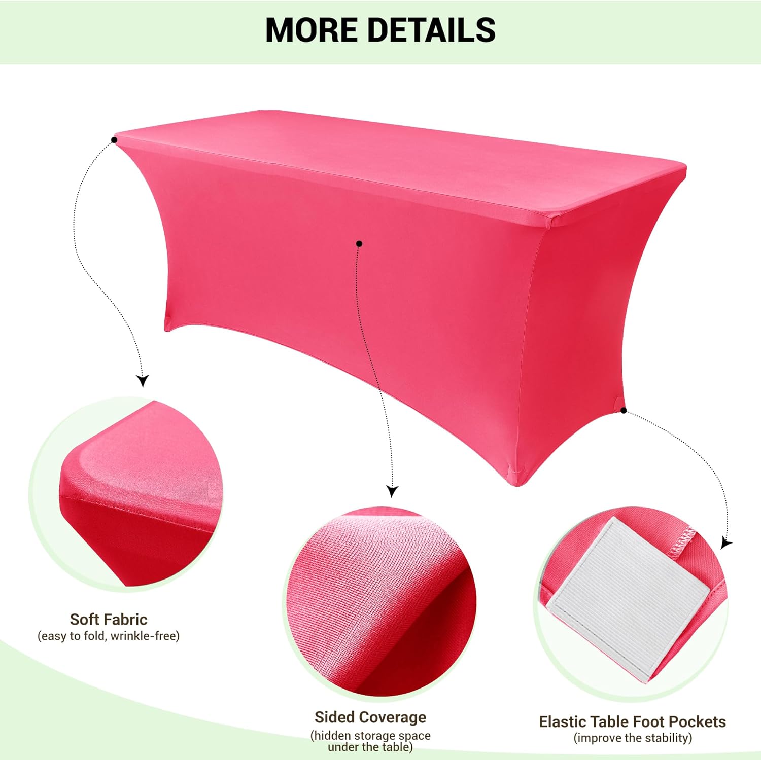 Obstal Spandex Table Cover 6ft Fitted Tablecloth Rectangular - Stretch Folding Table Cloth Rectangle for Birthday Party Wedding Banquet, Magenta Red, 72L x 30W Inch