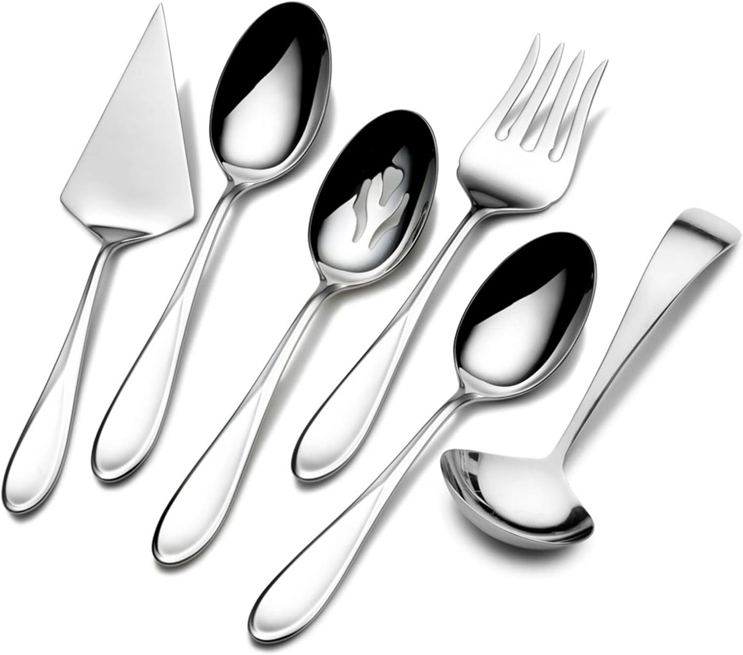 - Included Components : 6-piece serving set contains 2 serving spoons, 1 pierced serving spoon, 1 serving fork, 1 pie server, and 1 gravy ladle 6-piece serving set contains 2 serving spoons, 1 pierced serving spoon, 1 serving fork, 1 pie server, and 1 gravy ladle