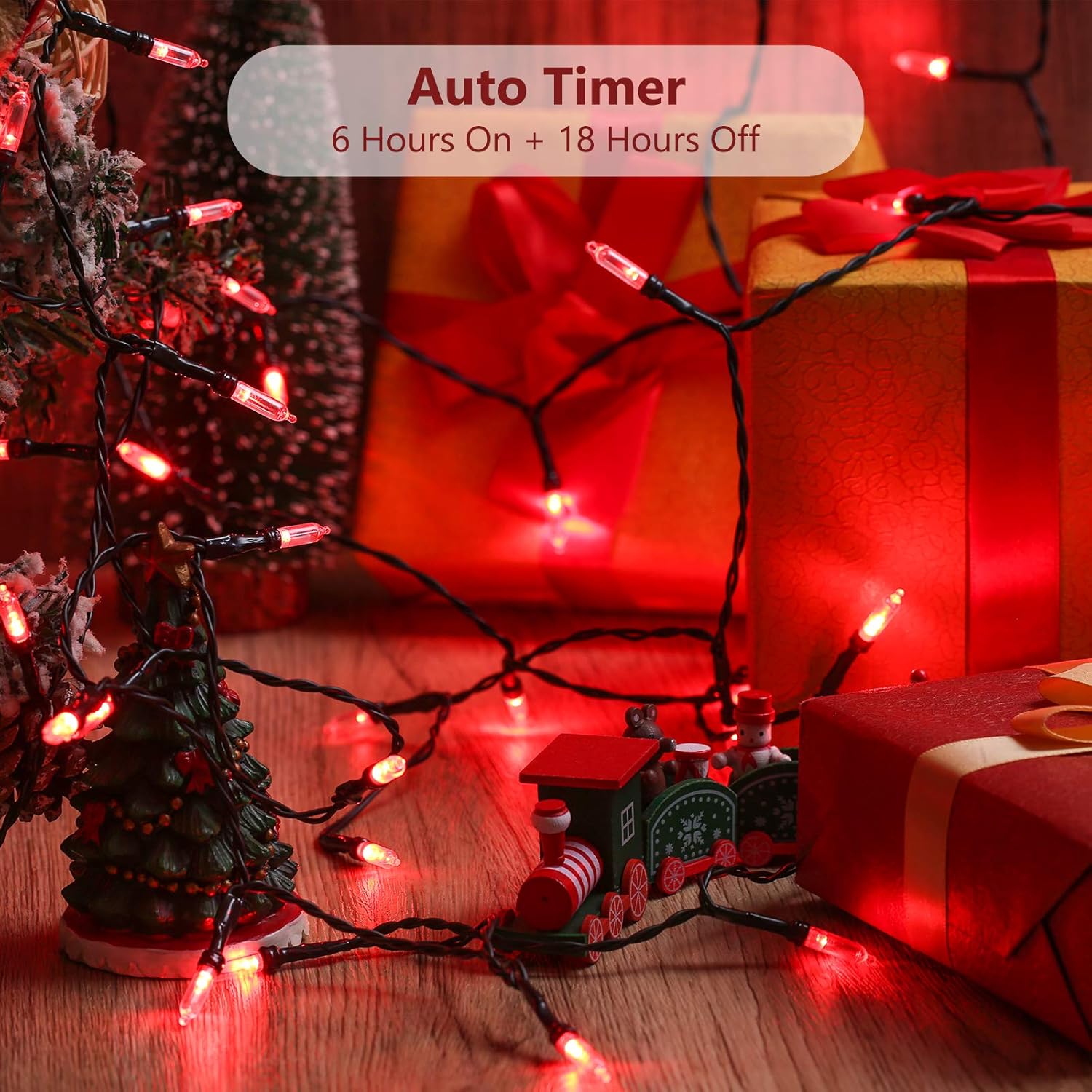- 8 Modes & Auto Timer: These red christmas string lights have 8 gorgeous lighting modes with built-in auto-timer 6 hours "ON" and 18 hours "OFF", which starts once you activate any one of the 8 modes on the battery holder. Note: If you change modes before the timer expires then it will stay on that mode for another 6 hours.