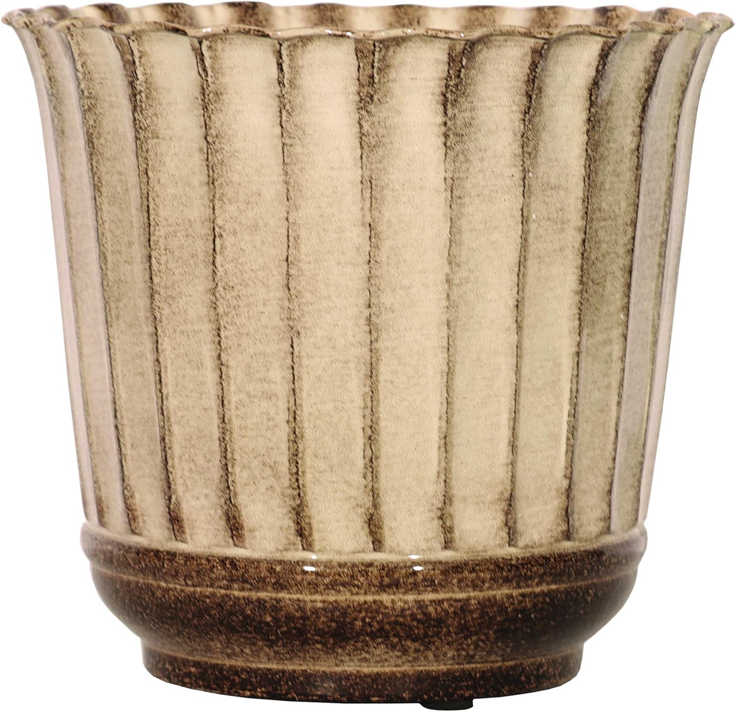 - -STYLE – From the Gateway Collection, the Revere Classic premium Ironstone spun planters have a vertical strip pattern that begins from their bottom rimmed design. These high-gloss planters are available in 4 sizes.