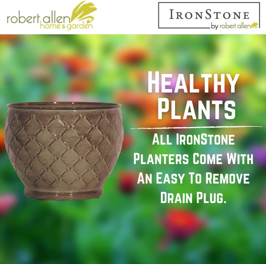 - -DRAINAGE β Contains a removable drain plug. Each IronStone planter comes with a drain plug that proves very useful whether inside or out during the changing seasons.