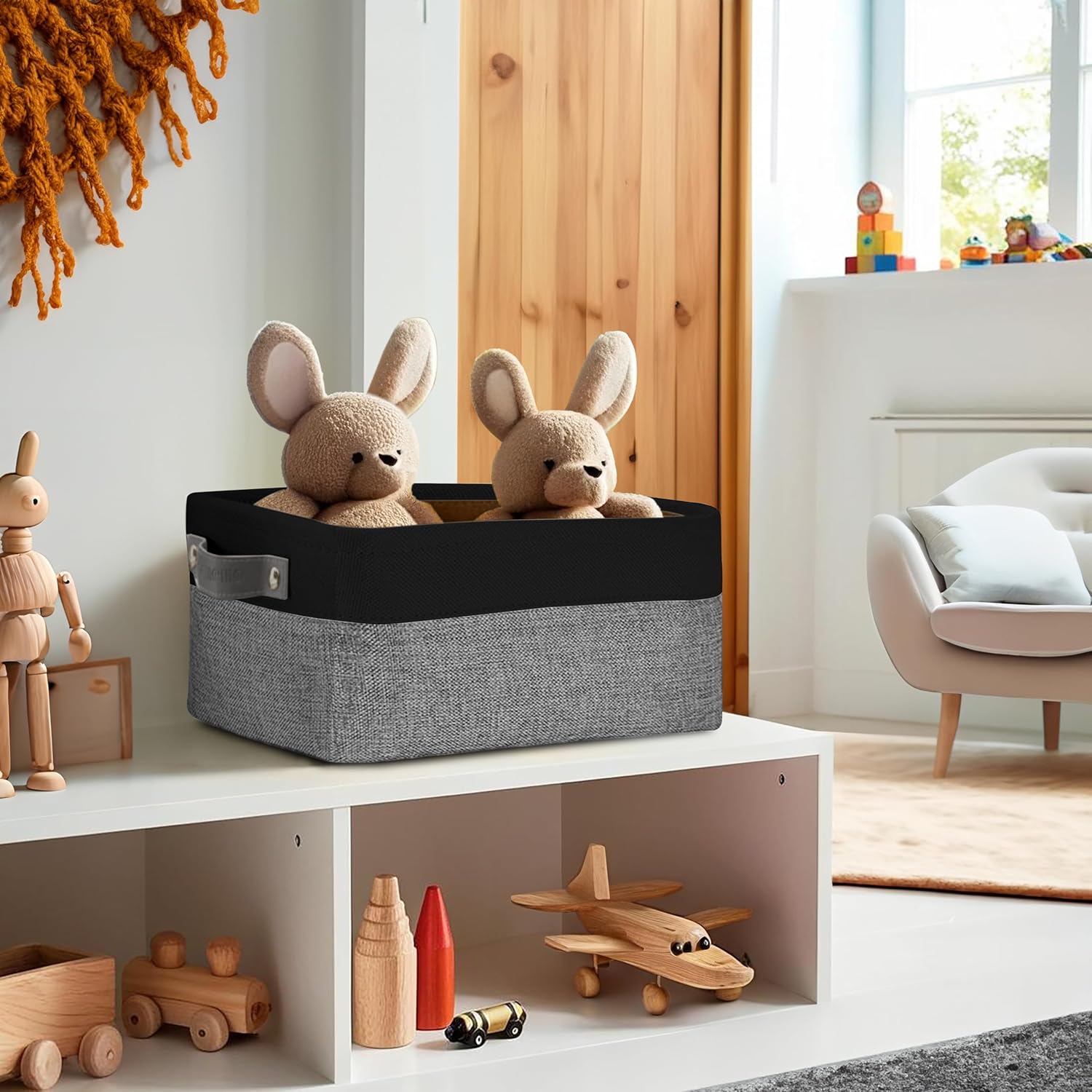 - Durable Design: DECOMOMO's baskets feature a sturdy metal frame, extra thick EVA exterior, polyester interior, 2.5mm MDF fiberboard bottom, and faux leather handles capable of holding up to 15 lbs.