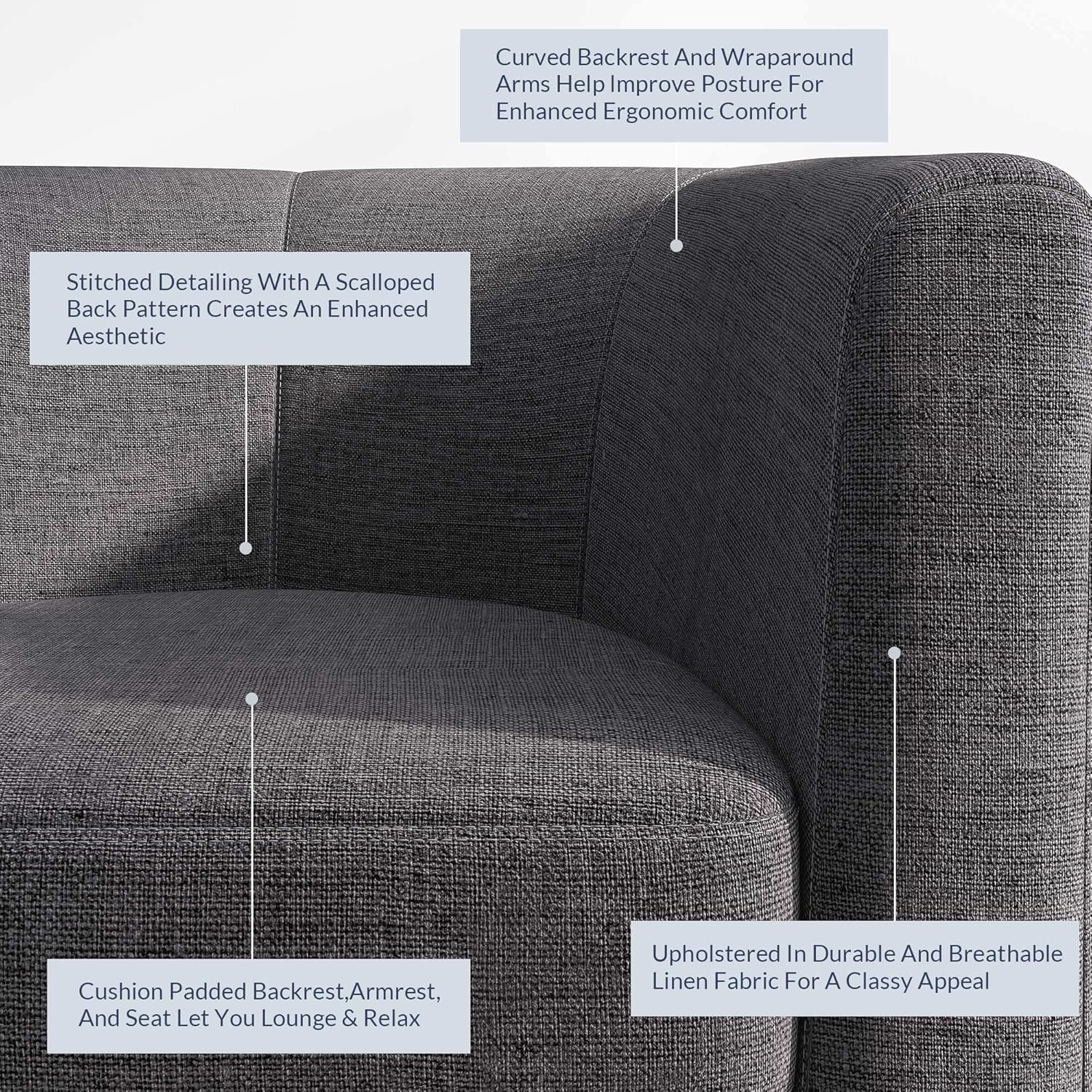 - [ERGONOMIC DESIGN] Our corner chair is designed with a curved backrest and wraparound arms, ensuring ergonomic seating with elevated comfort. Covered in breathable and durable linen, gives this accent chair an upscale look and feel.