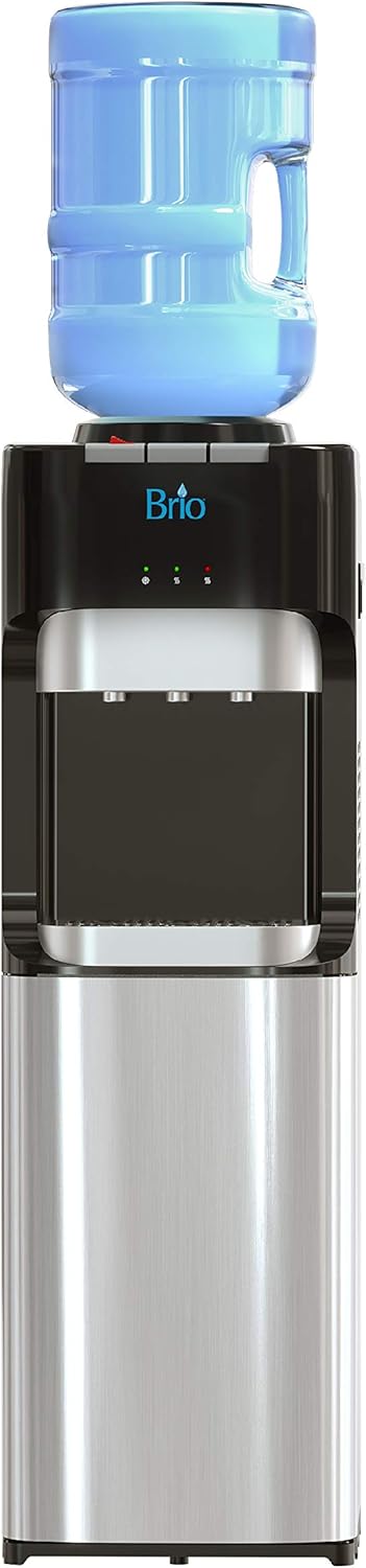 Brio Essential Series Top Loading Water Cooler Dispenser - Tri Temp Dispense, Child Safety Lock, Holds 3 or 5 Gallon Bottles - UL/Energy Star Approved