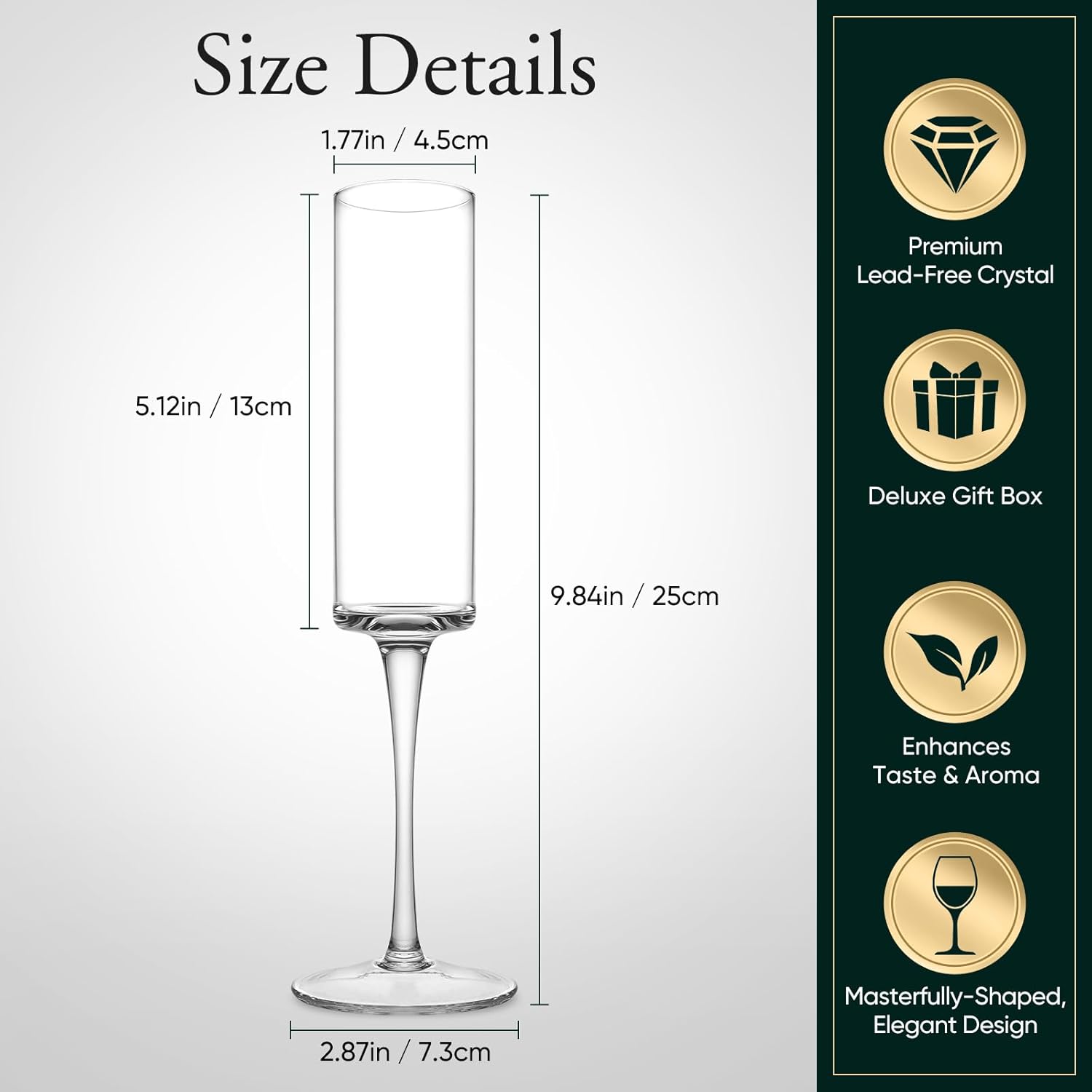 - Classy Gift With Gift-ready Packaging: Elegant and exquisite wine glasses often need more high-end packaging boxes to reflect.Order these long stem champagne flutes for yourself or as a thoughtful housewarming gift idea for a special friend, and you can be sure to win their appreciation!