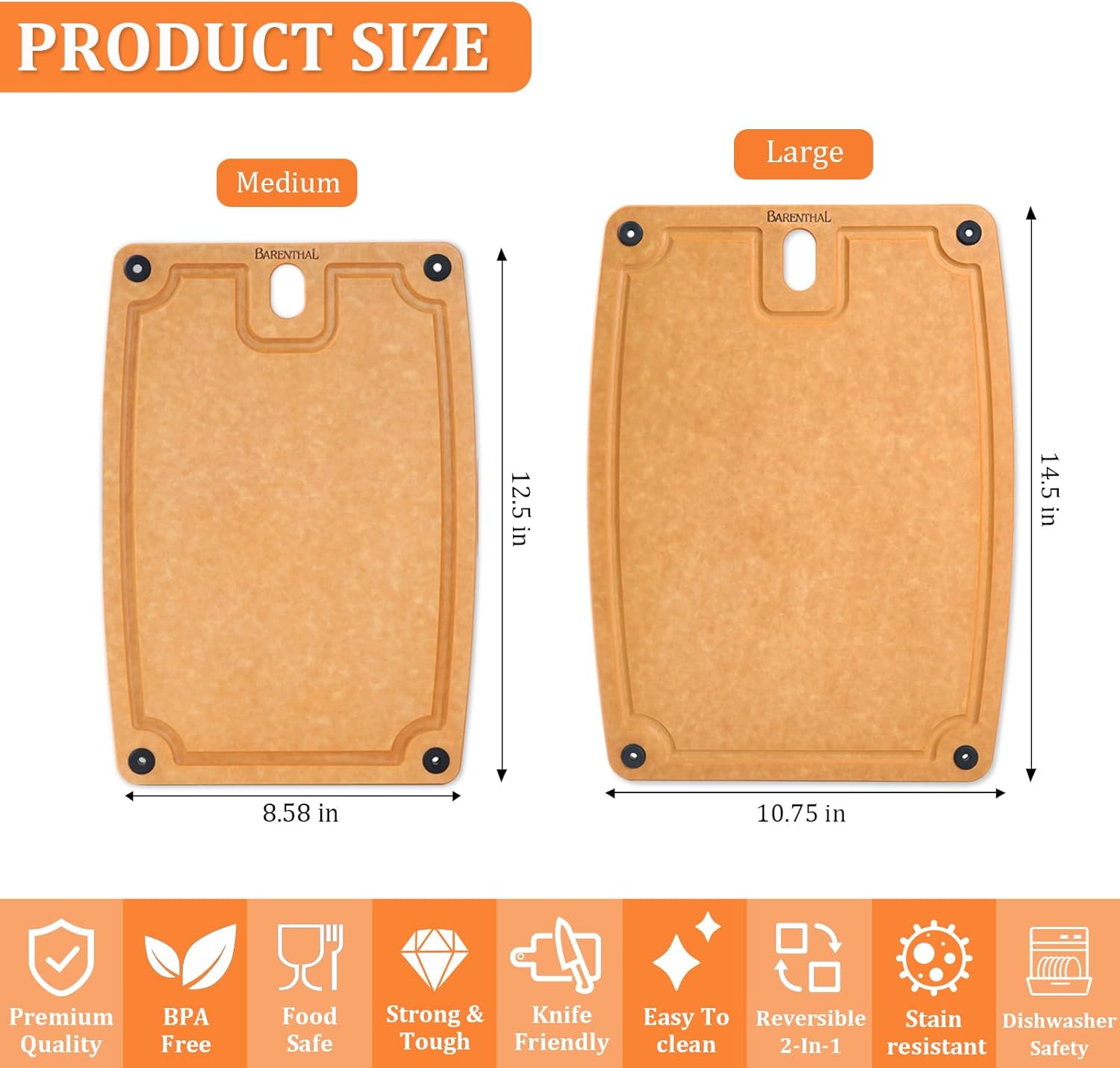- [2๐๐พ ๐๐ช๐ฉ๐ฉ๐๐ฃ๐ ๐๐ค๐๐ง๐]: it comes with 2pc including L and M size . L size is 14.5 * 10.75 inch while M size is 12.5*8.5inch, 2pc cutting board could meet your all cutting need , just like fruits, vegetables, raw meat, fresh meat and bread.