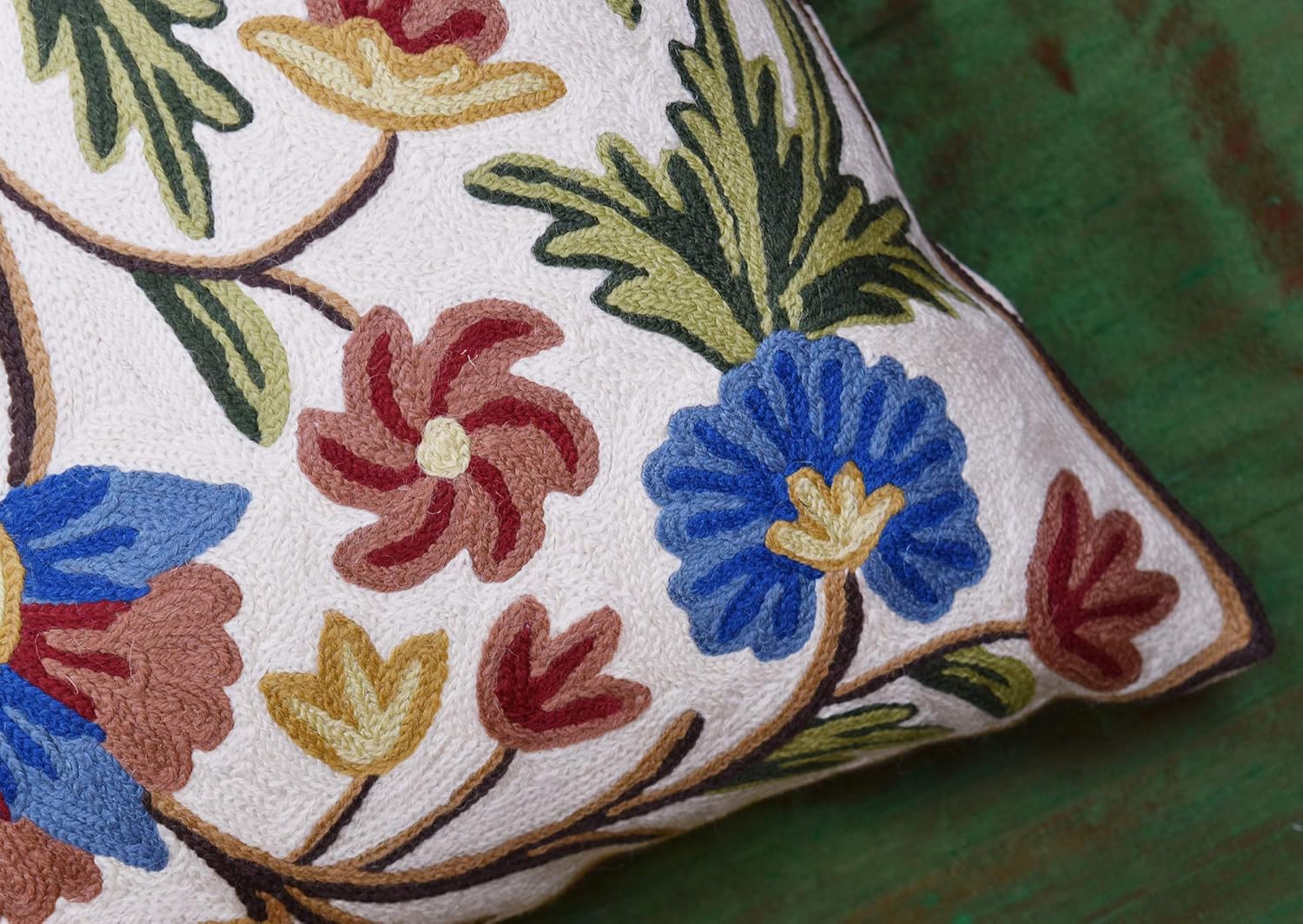 - 🌸 CREAM FLORAL FRENCH STYLE PILLOW COVER - HAND EMBROIDERED: Elevate your home decor with our exquisite Cream Floral French Style Pillow Cover. Crafted by the finest artisans, these hand-embroidered floral pillows draw inspiration from contemporary modern floral art designs. Each stitch is meticulously executed in soft wool, resulting in a masterpiece that adds an extraordinary touch to your home decor. Immerse yourself in the fine chain-stitch hand embroidery that adorns the entire front side
