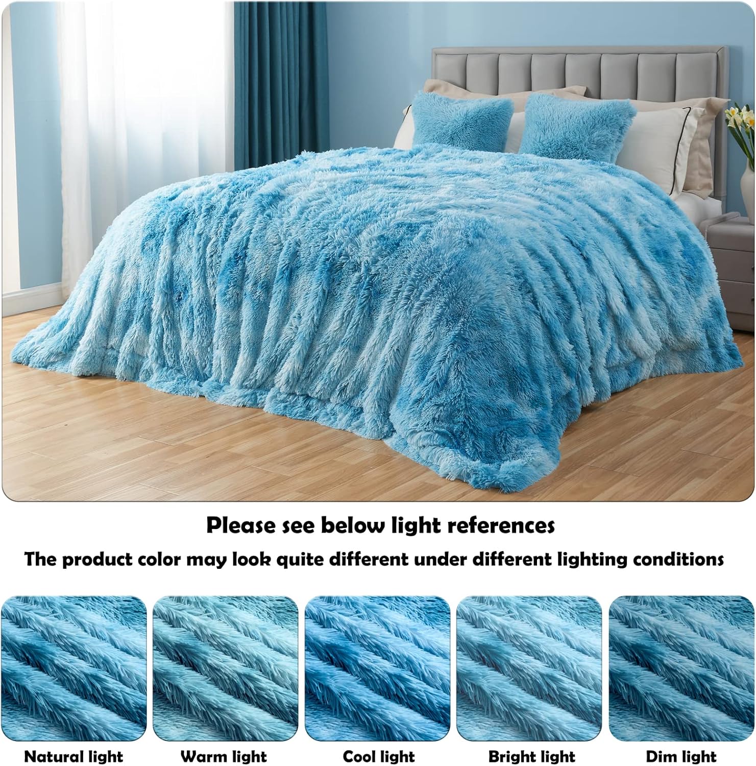 GONAAP Fuzzy Faux Fur Throw Blanket Twin Size Tie-dye Ocean Blue Super Soft Cozy Plush Fuzzy Shaggy Blanket for Couch Sofa Bed (Tie-dye Ocean Blue, Twin(60"x80"))