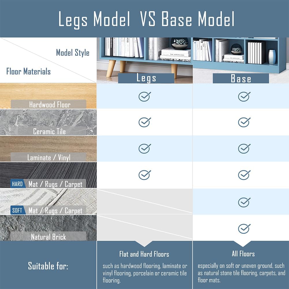 IOTXY Wooden Open Shelf Bookcase - 3-Tier Floorstanding Display Cabinet Rack with Legs, 8 Cubes Free Standing Bookshelf, Bright Blue