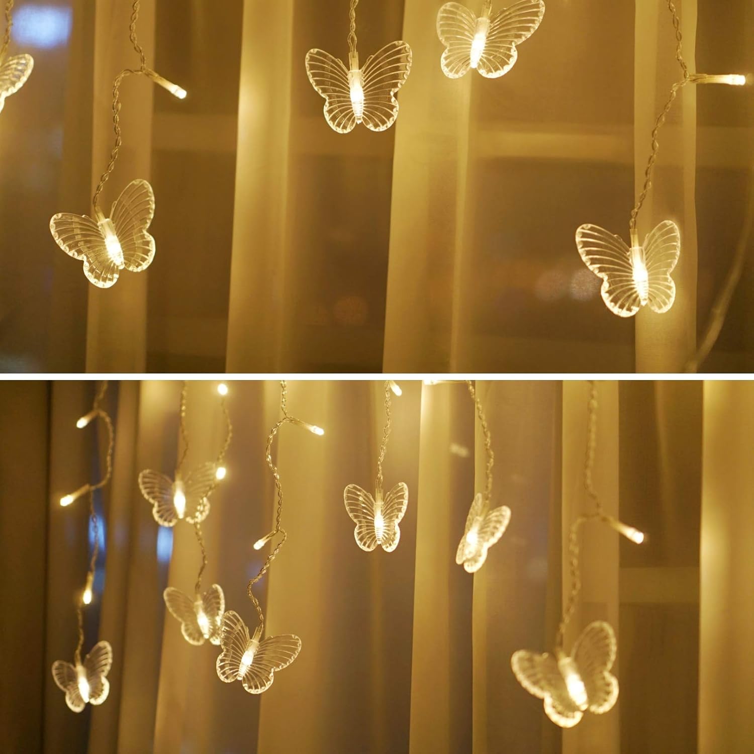 Butterfly Curtain Fairy Lights USB Plug in, 8 Modes 96 LED 11.5FT Firefly Window Twinkle Timer String Lights with Remote for Bedroom Patio Christmas Wedding Party Decoration (Warm White)